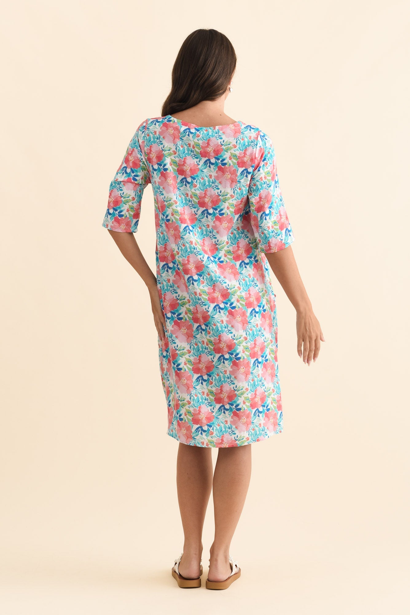 - Half-length sleeves offer coverage while maintaining a light, airy feel