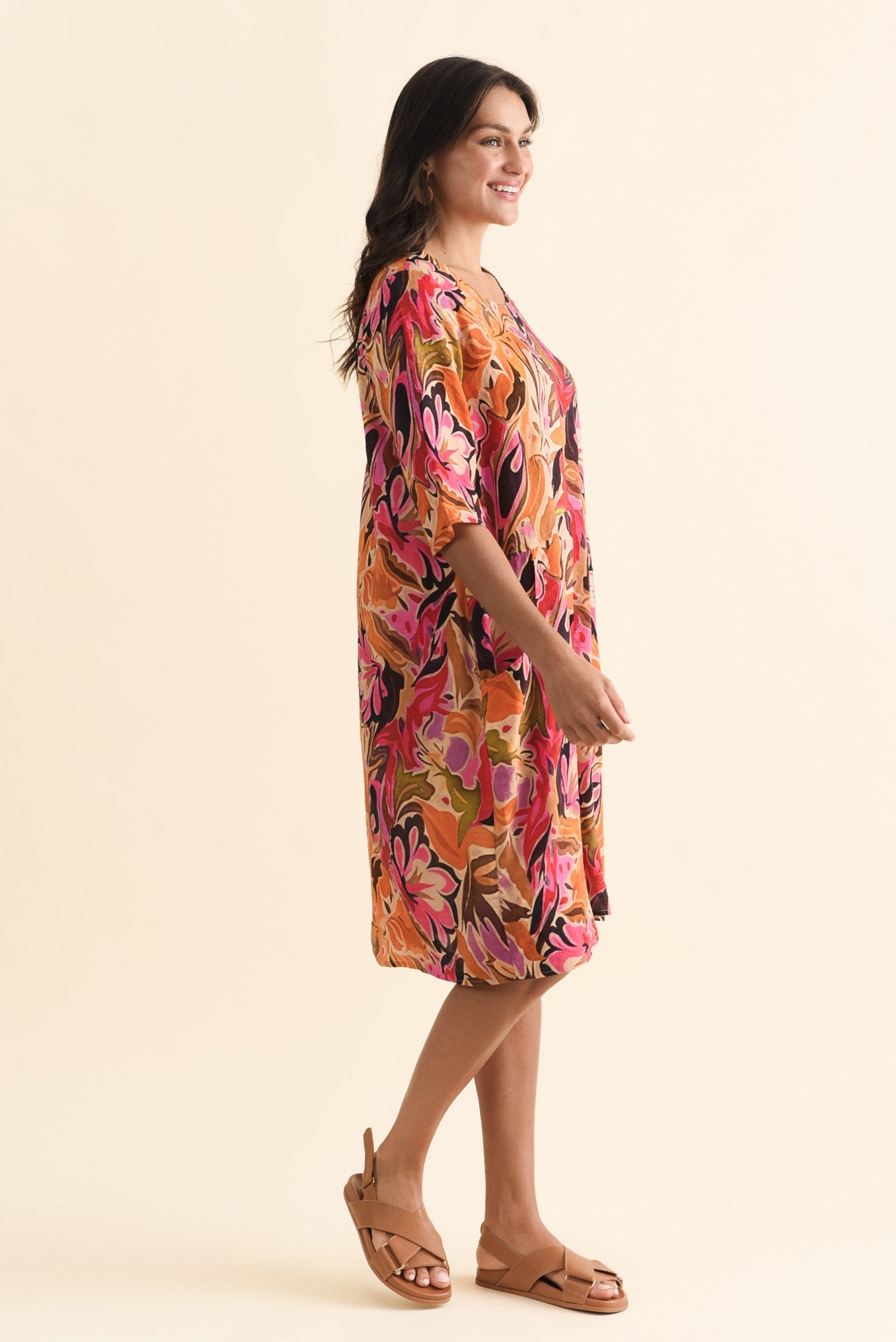 Half-length straight sleeves balance coverage with a light, airy feel