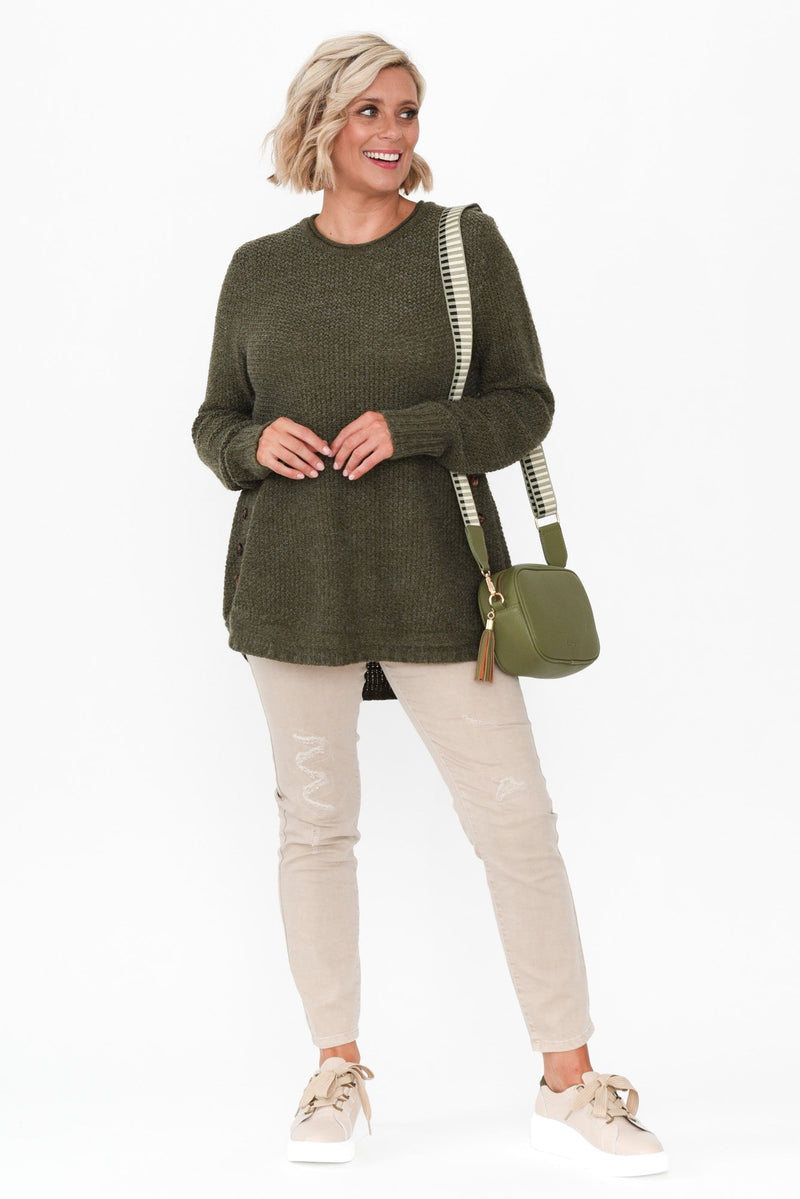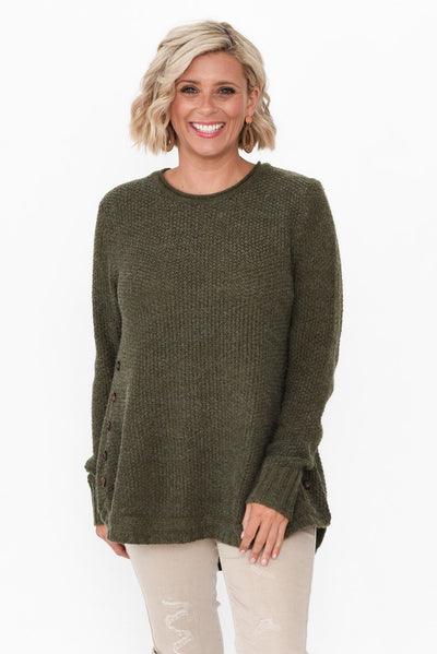 Lucas Khaki Knit Button Jumper