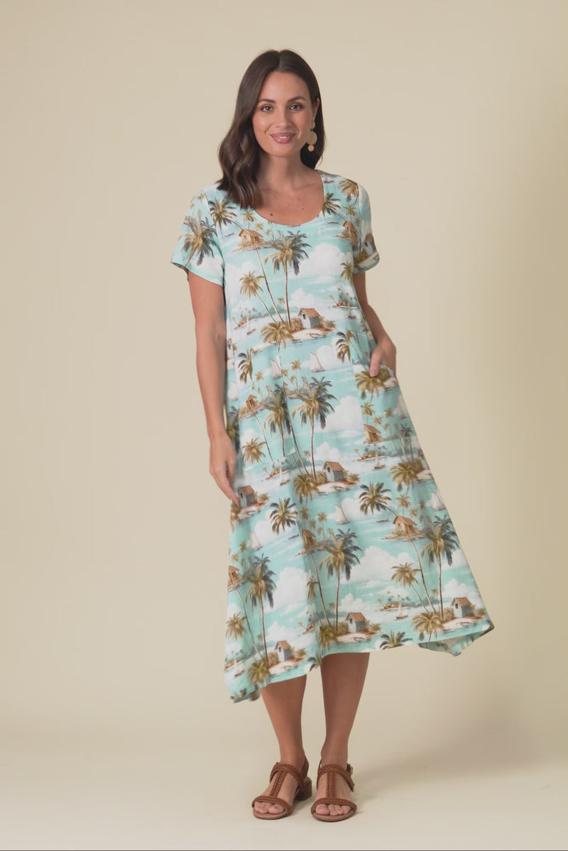 Lula Blue Tropical Linen Cotton Dress