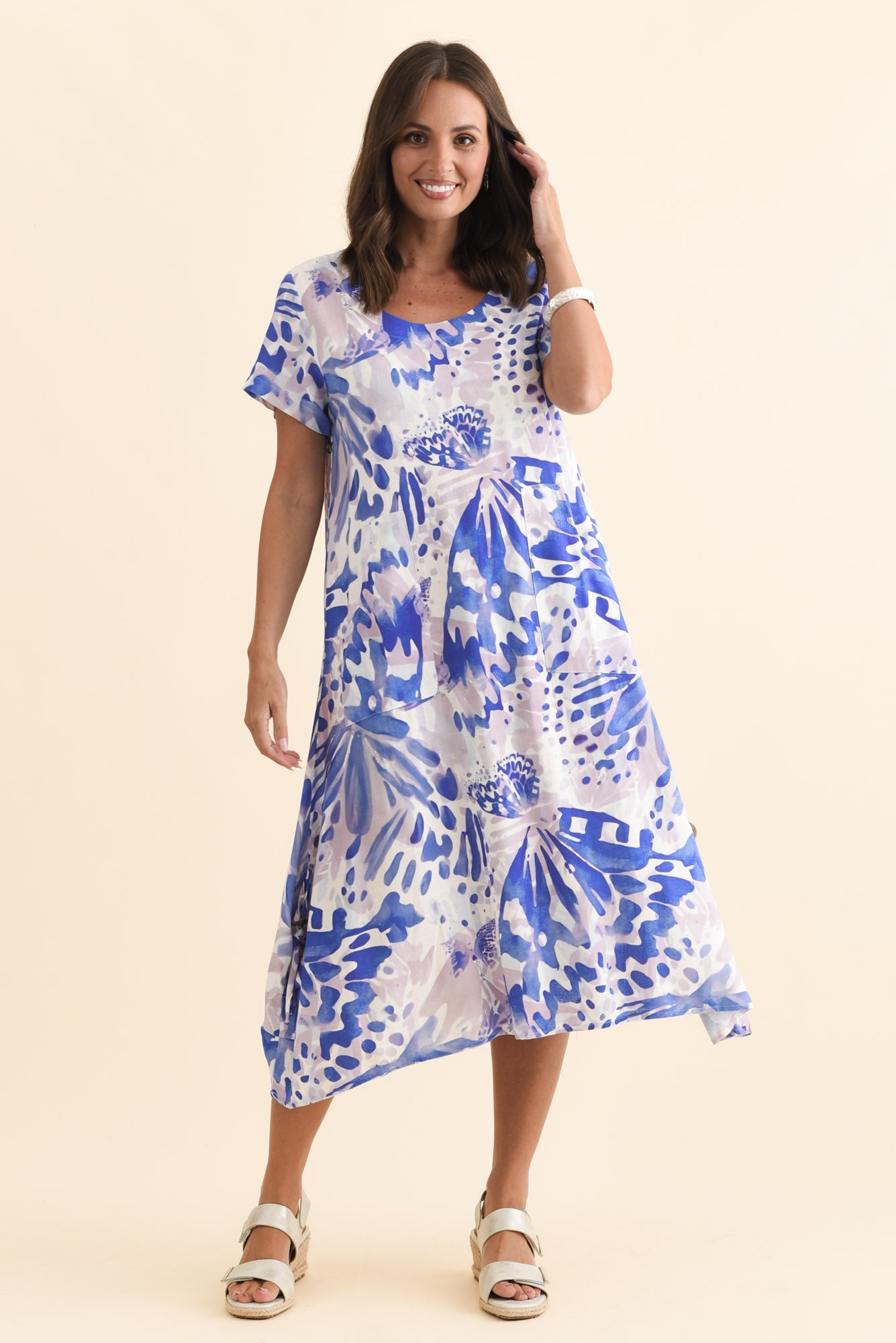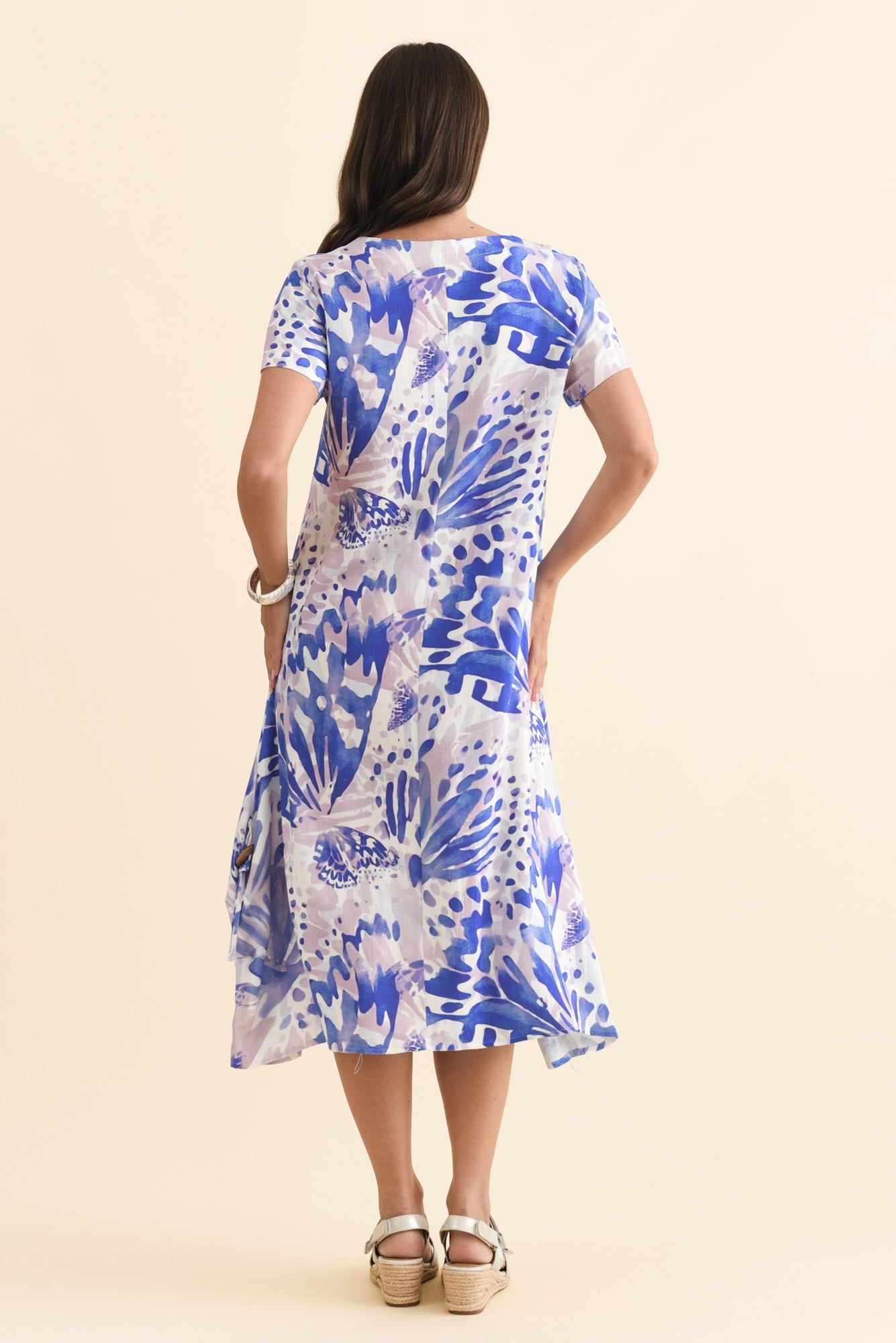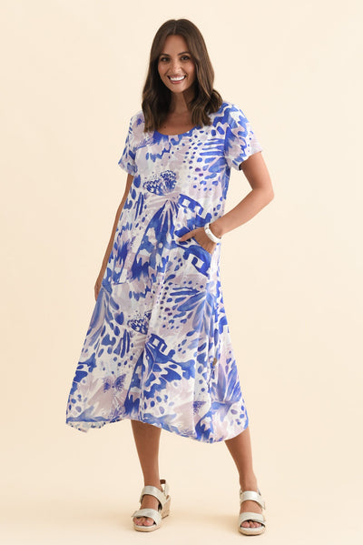 Lula Cobalt Abstract Linen Cotton Dress