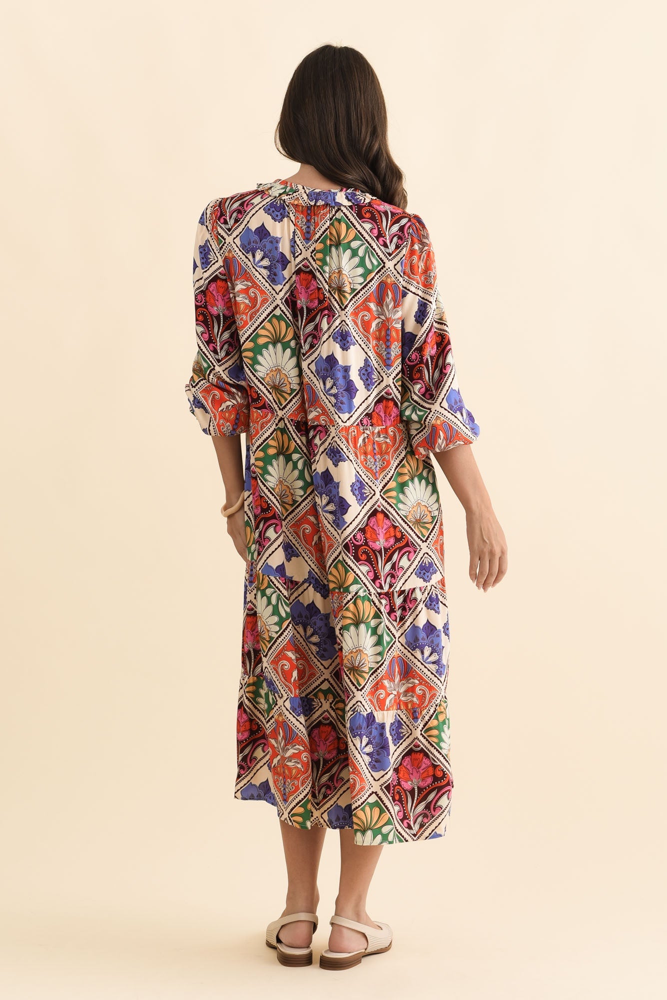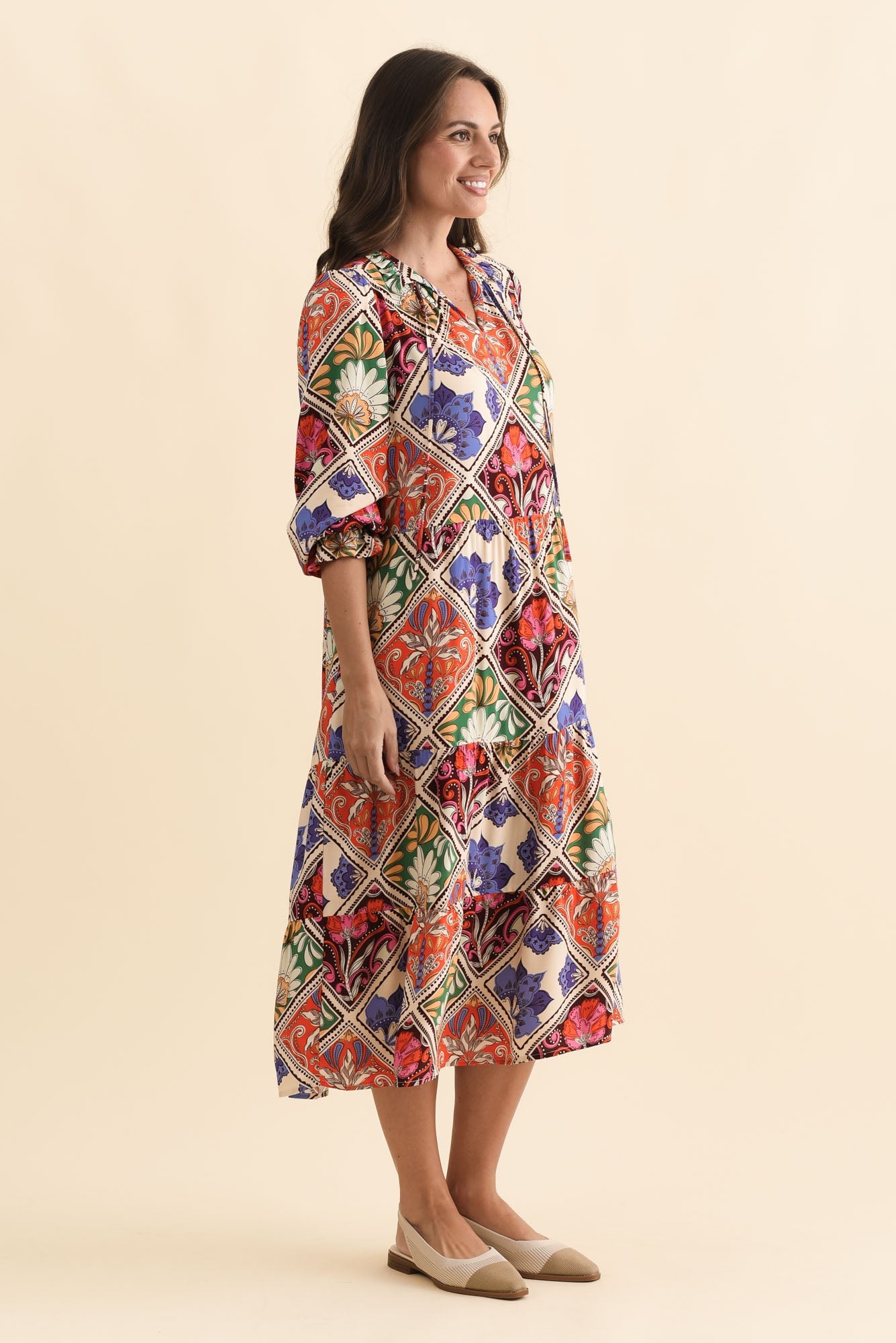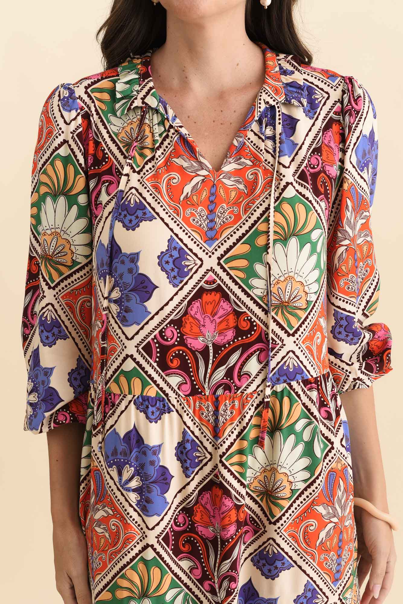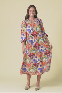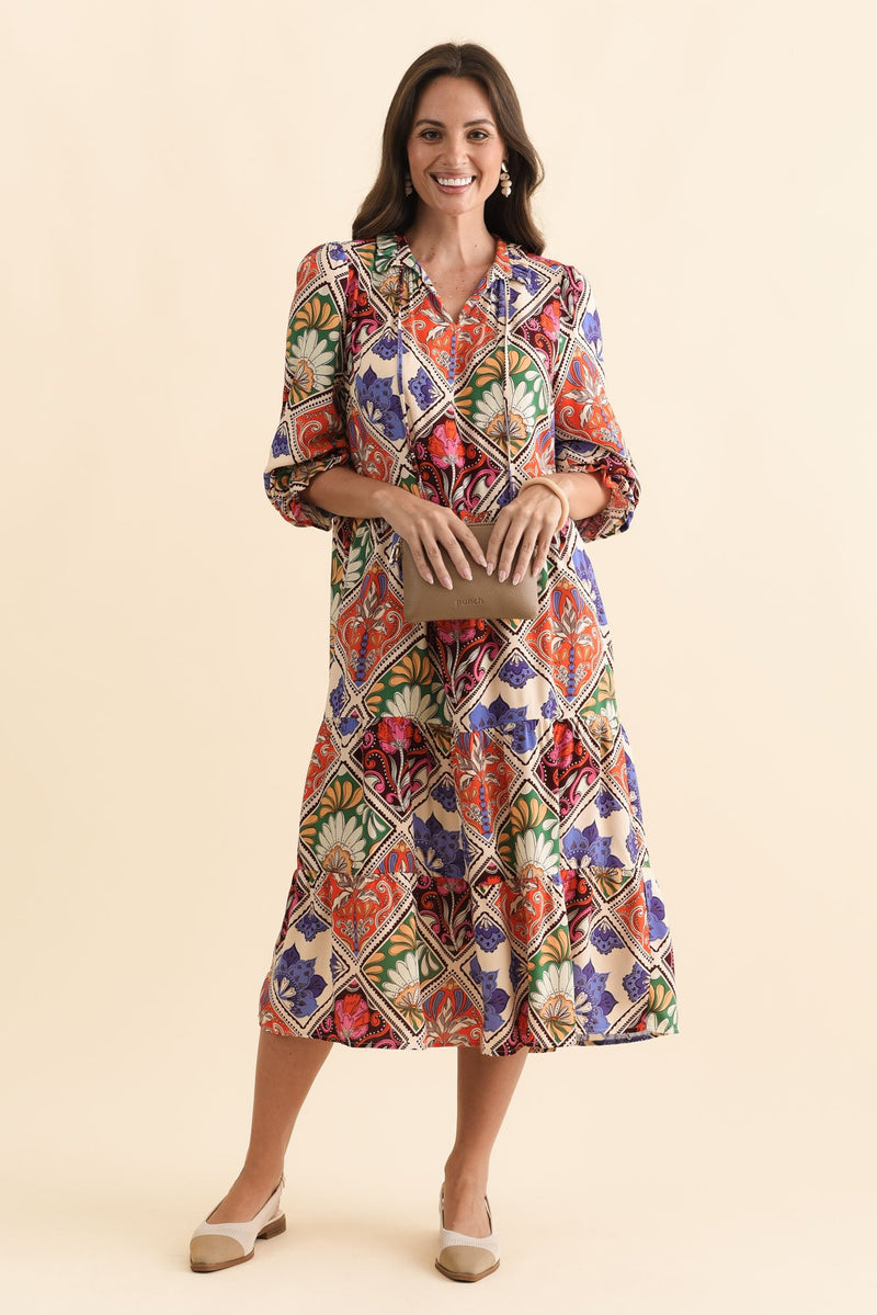 Lyon Orange Tile Sleeved Dress