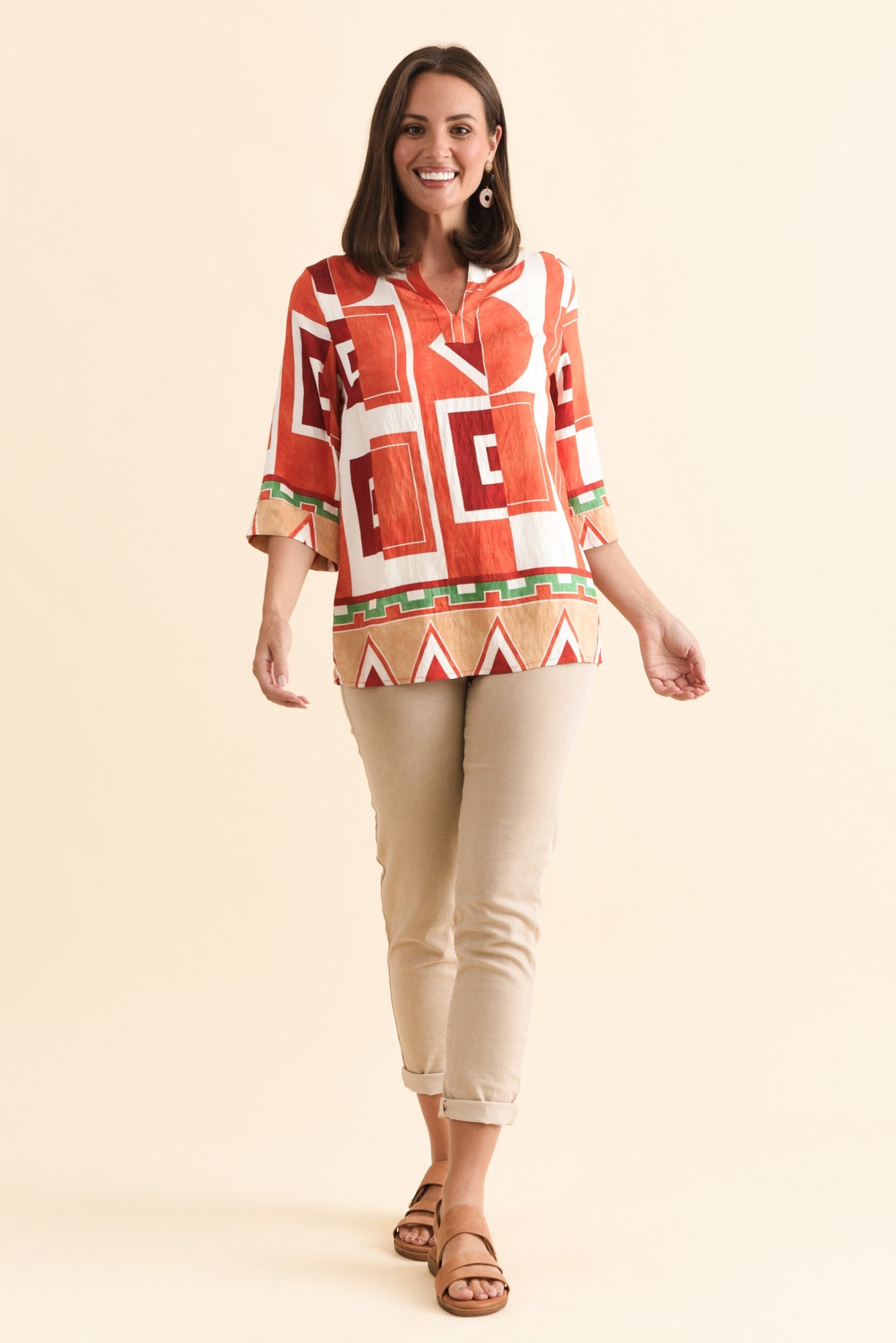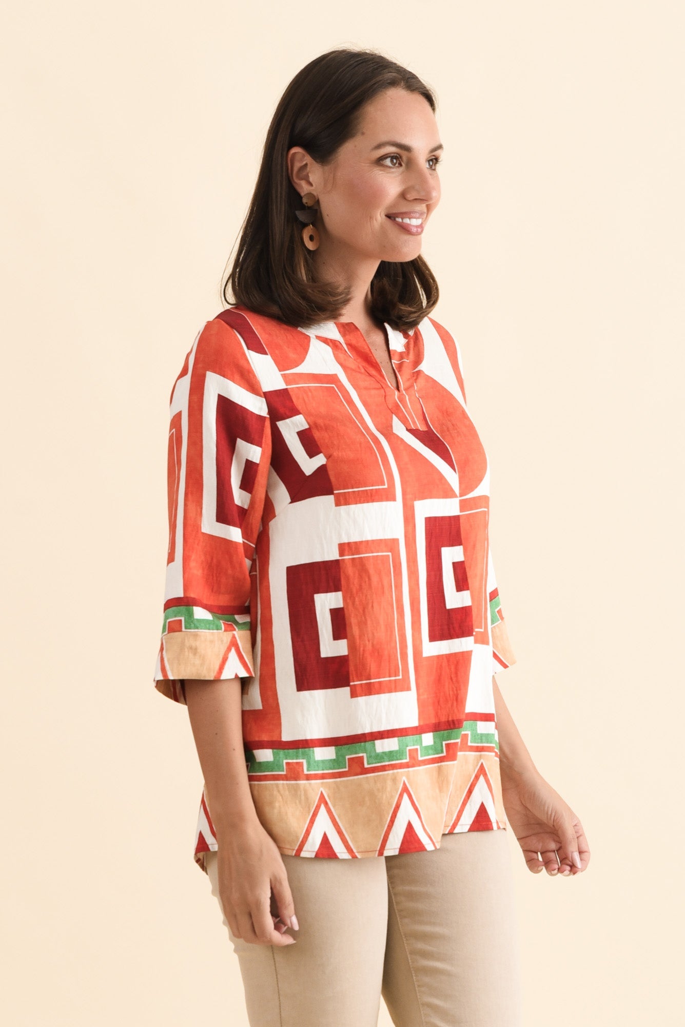 MADDOX ORANGE GEO COTTON TOP