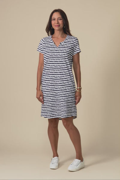 Mandy Navy Abstract Stripe Cotton Tee Dress