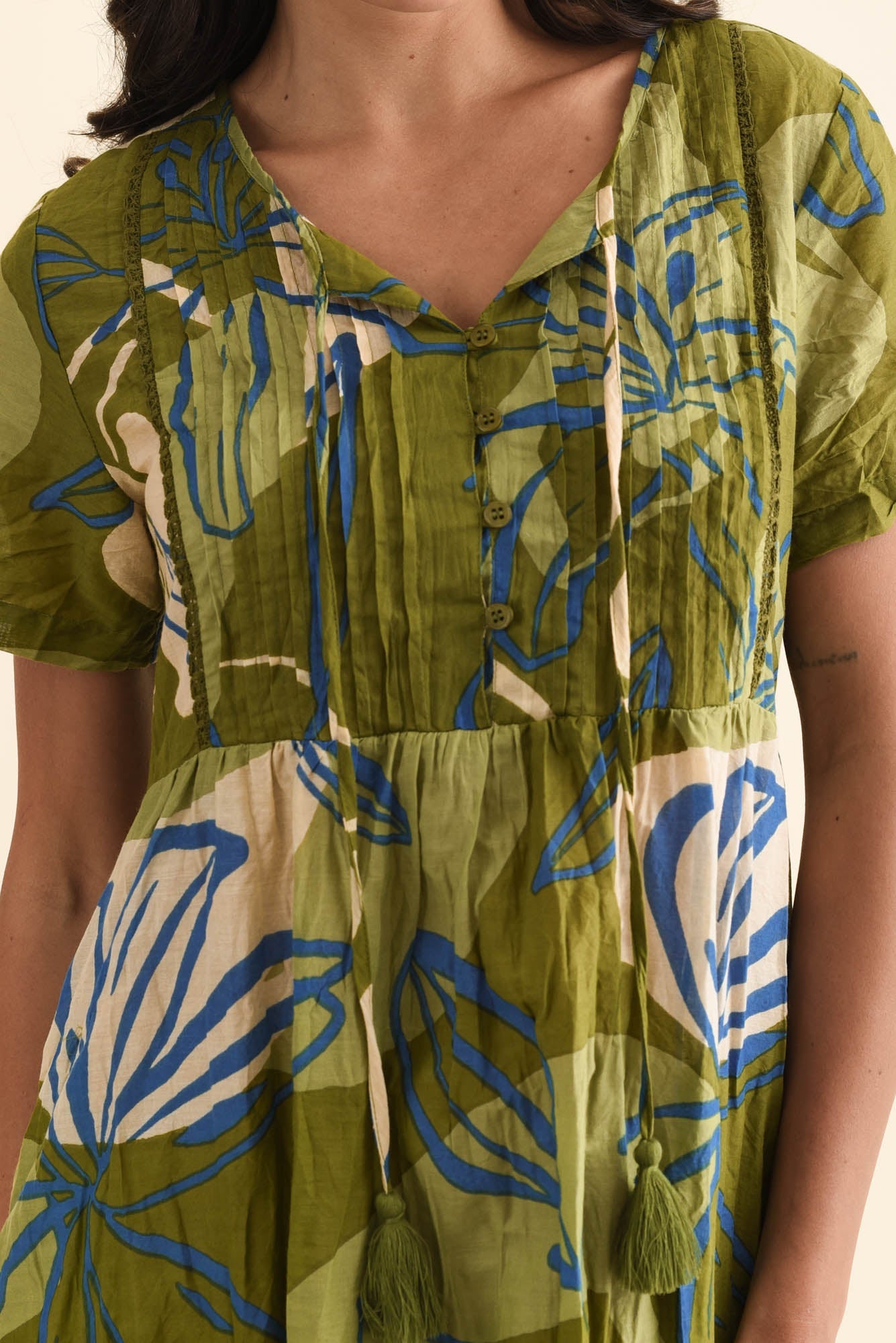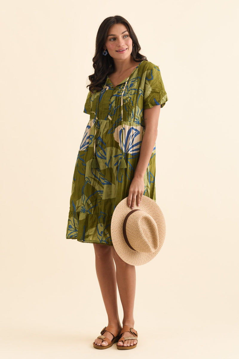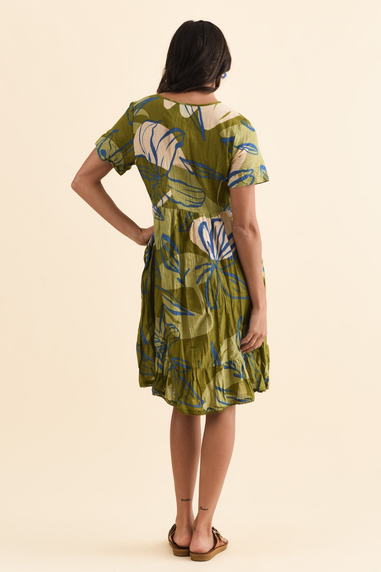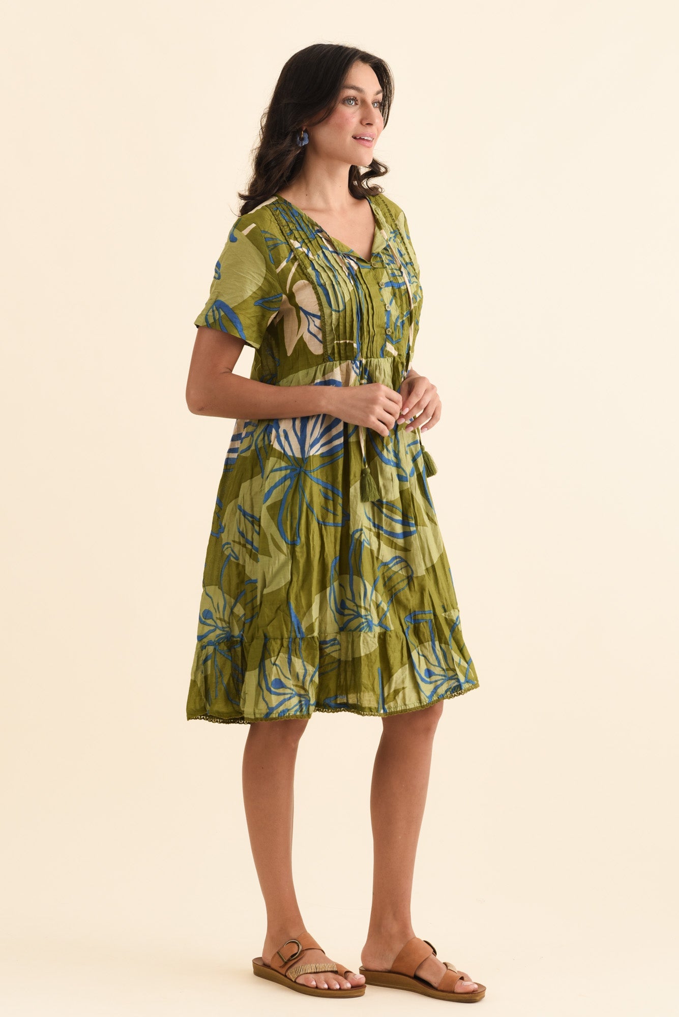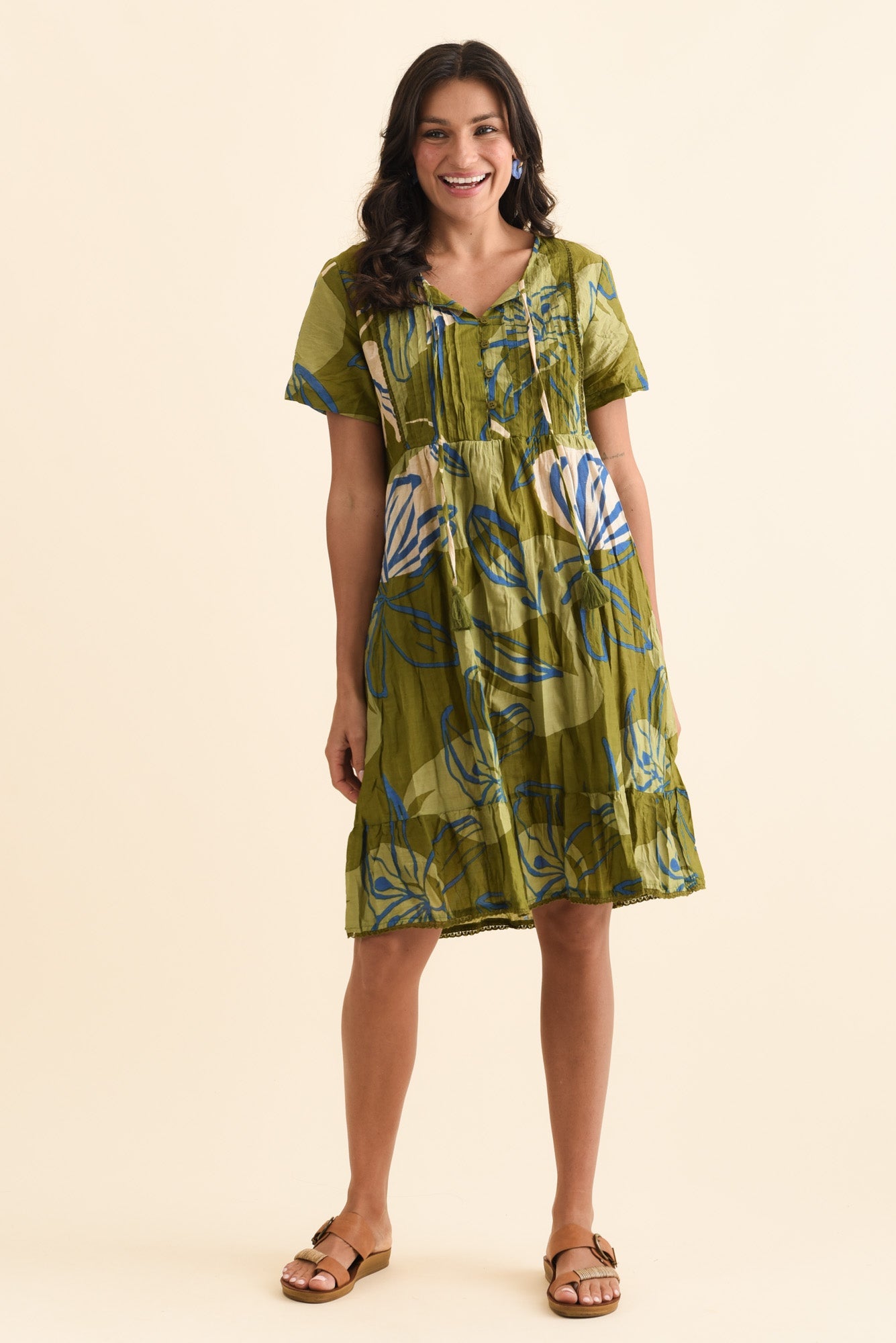 MARISOL OLIVE TIGER LILY CRINKLE COTTON DRESS