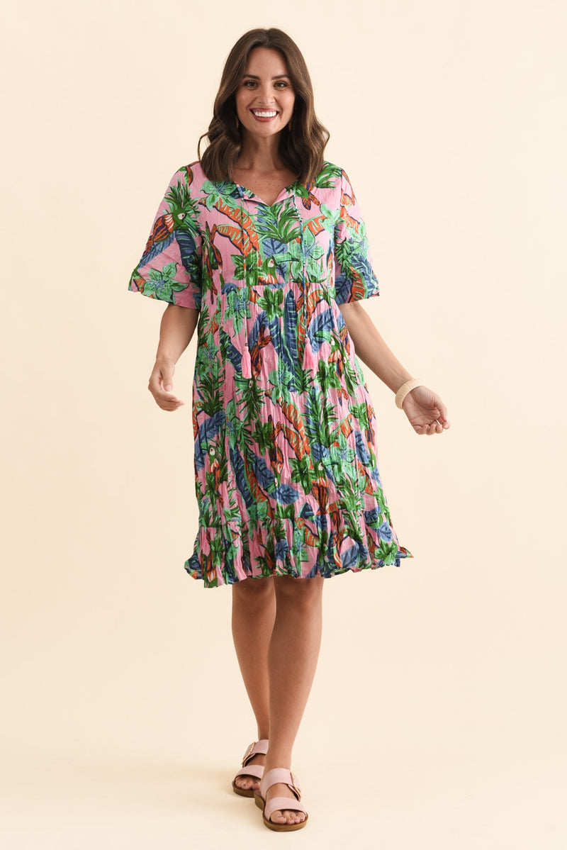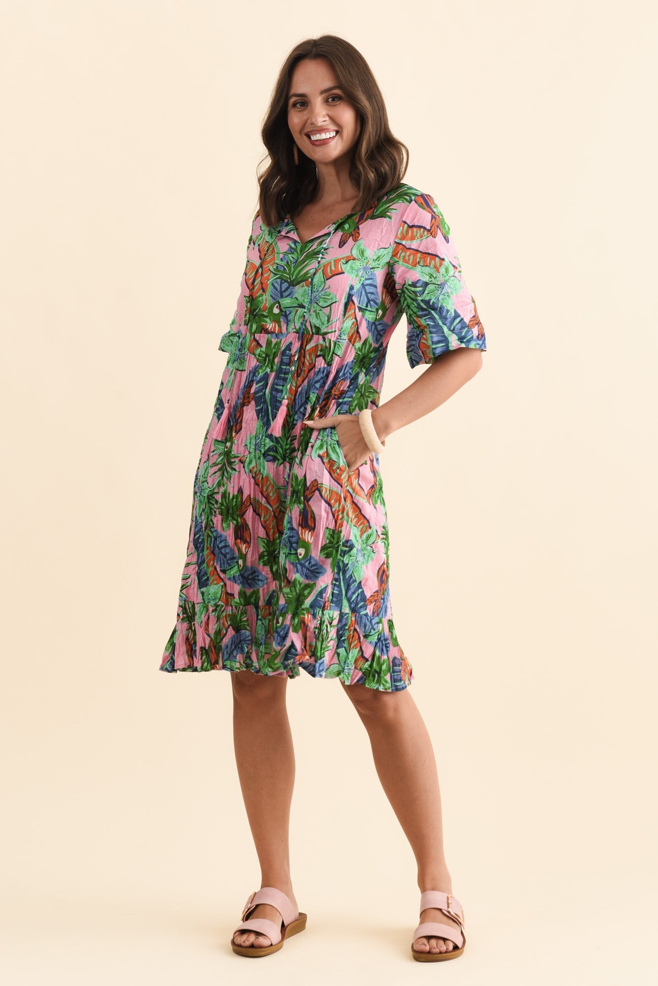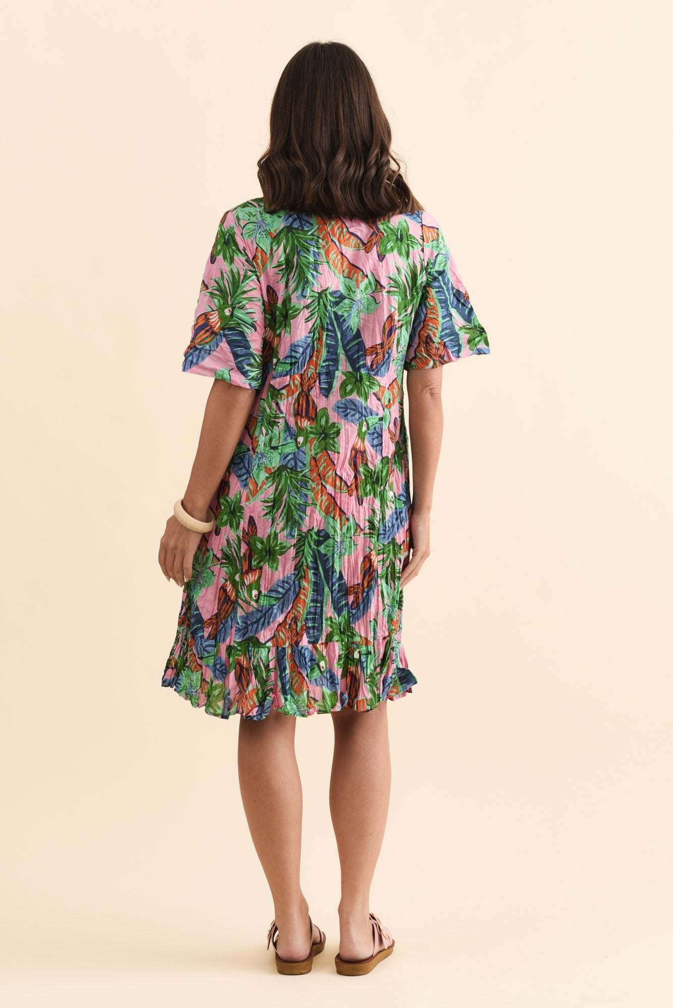 MILA PINK JUNGLE CRINKLE COTTON DRESS