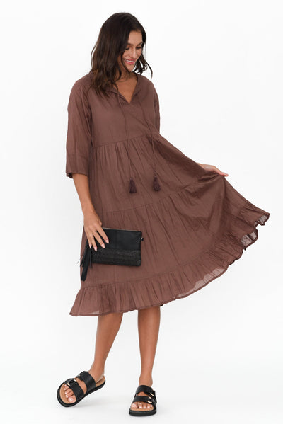 MILANA CHOCOLATE CRINKLE COTTON DRESS