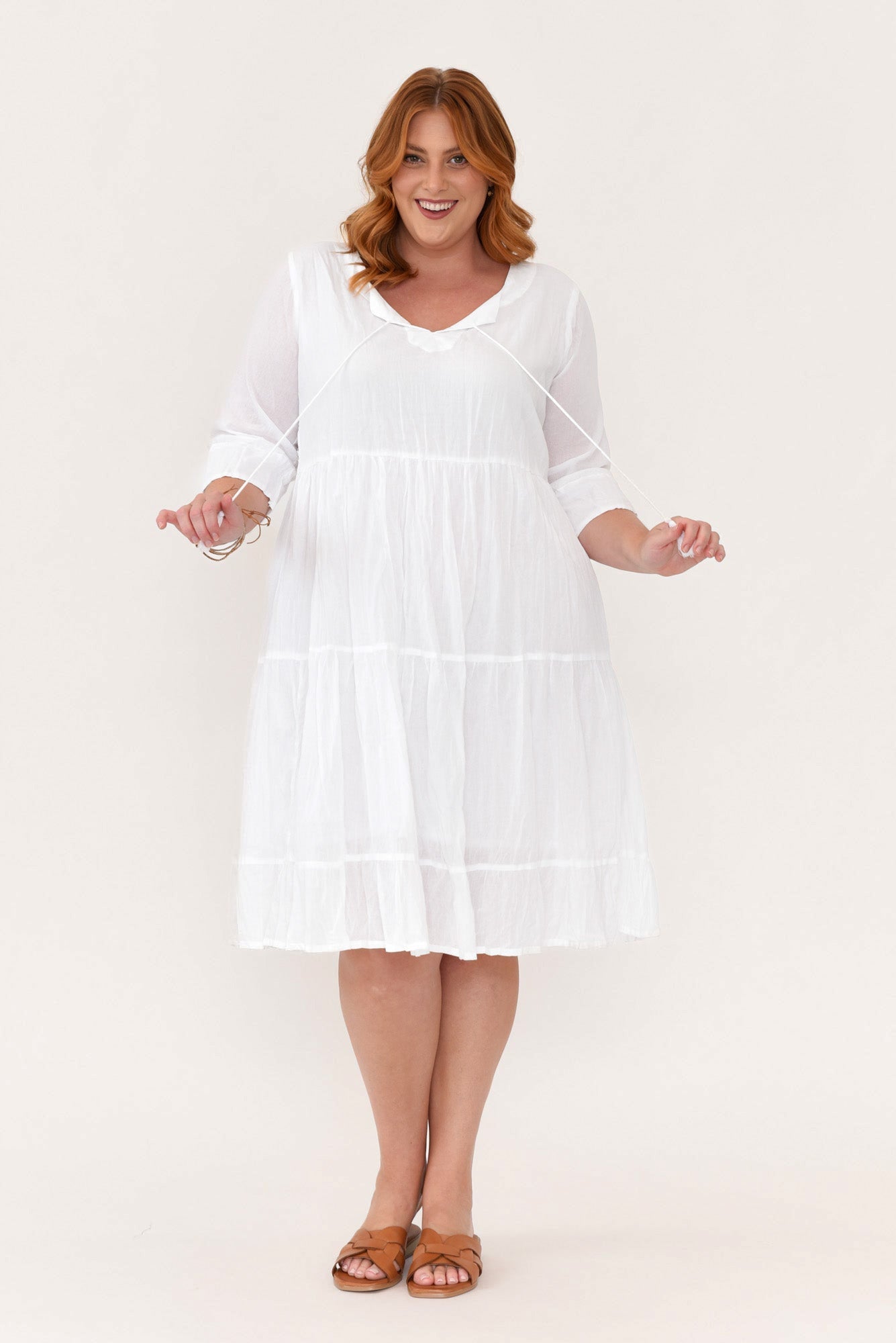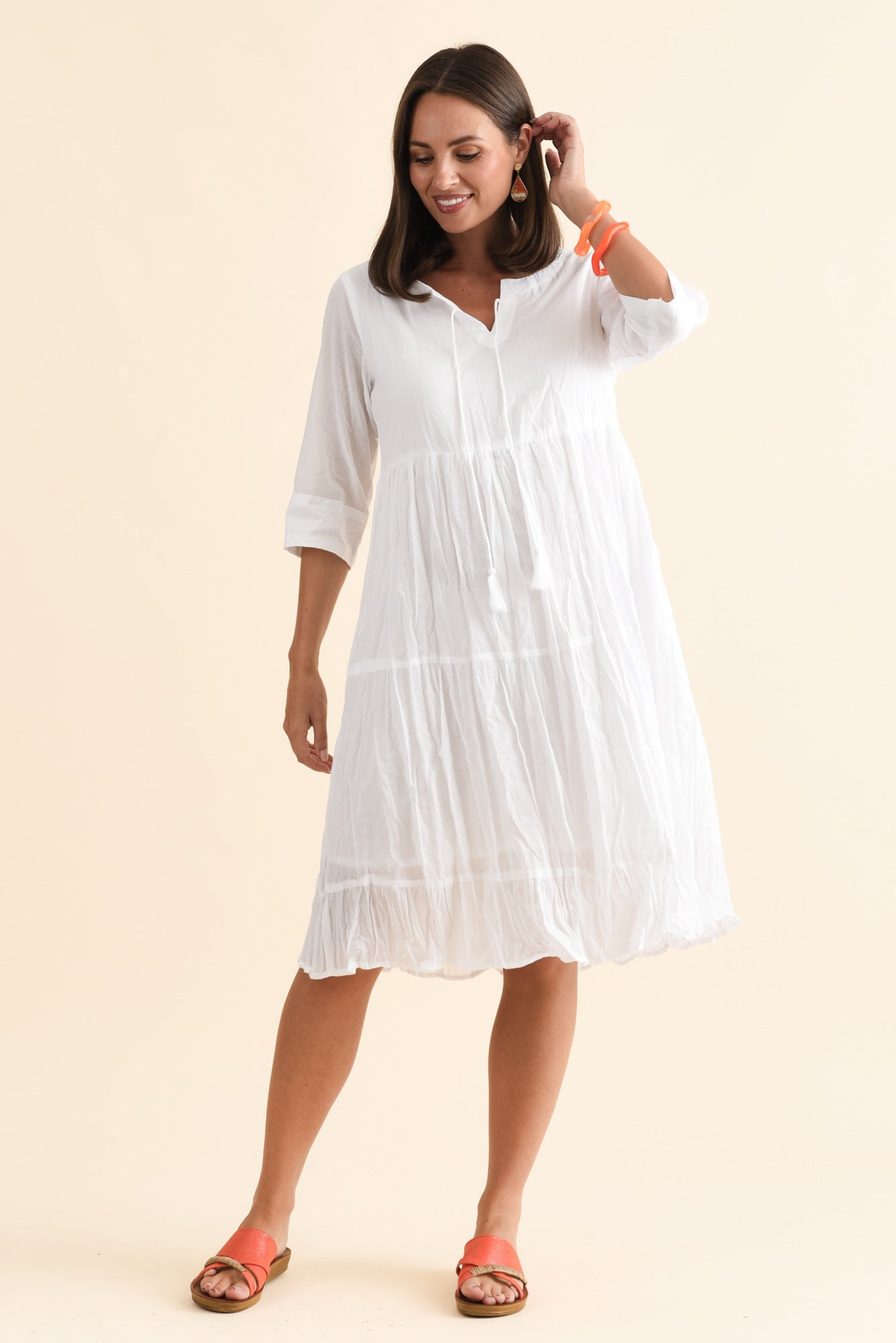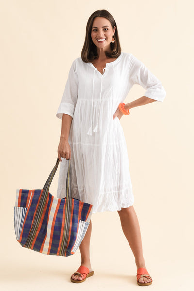 MILANA WHITE CRINKLE COTTON DRESS