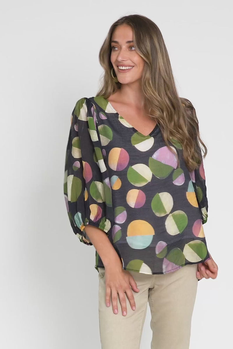 Three-quarter length statement puffed sleeves, detailed with elasticated cuffs