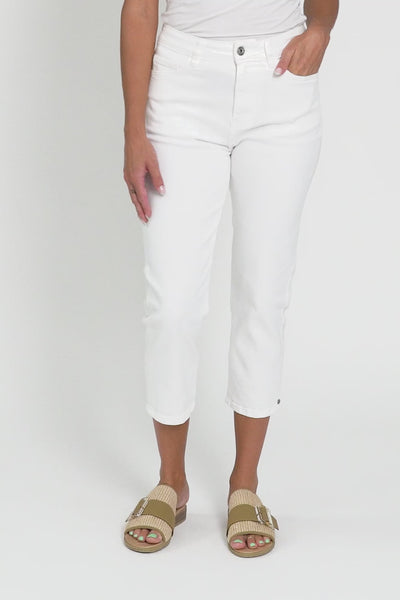 MOLLIE WHITE STRETCH DENIM CAPRI JEANS