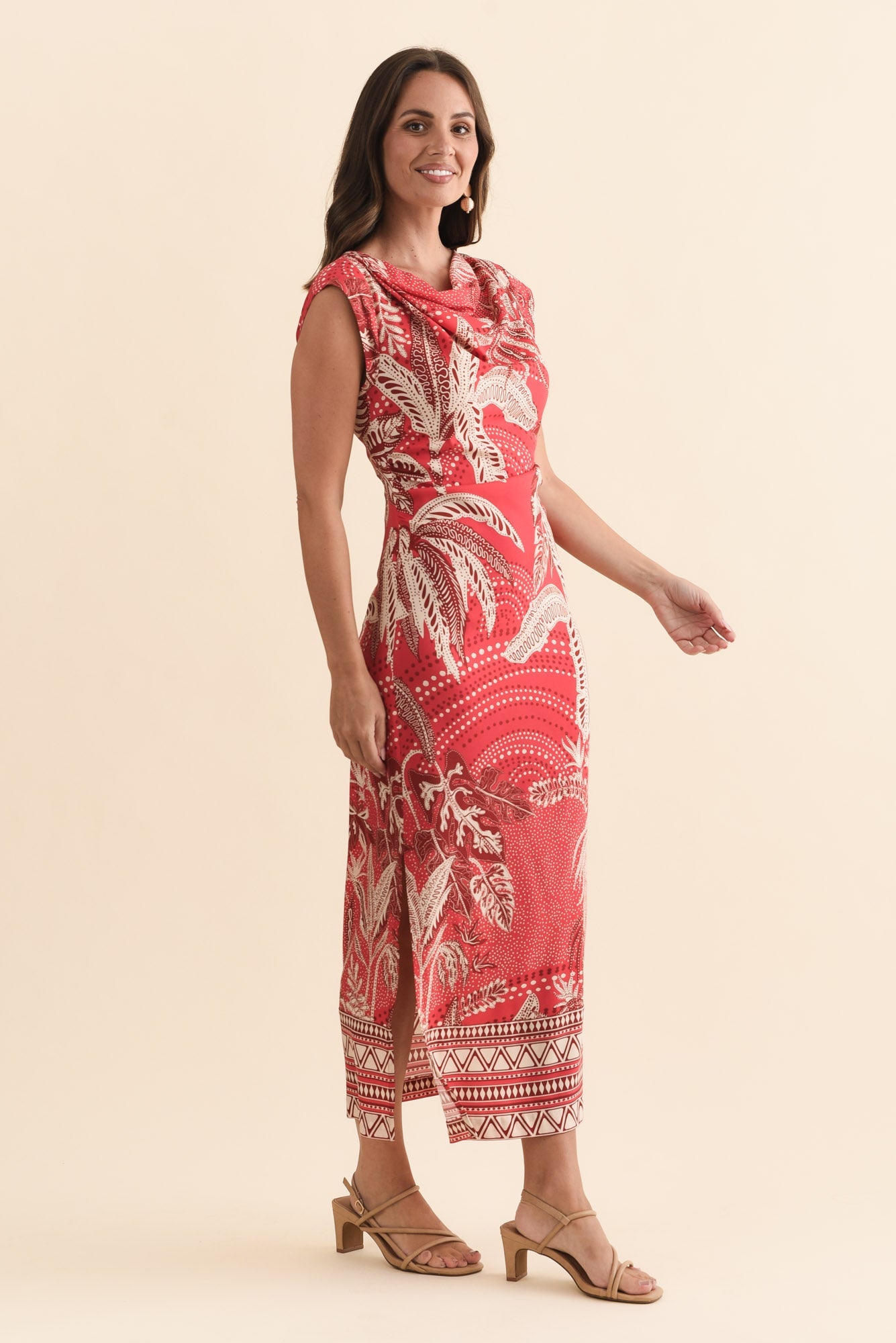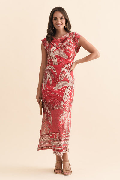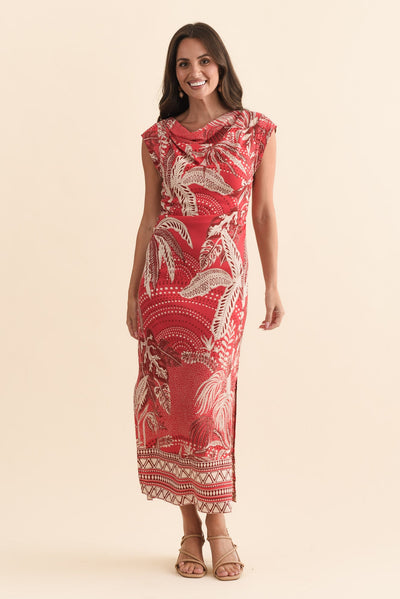 Monique Red Palm Midi Dress