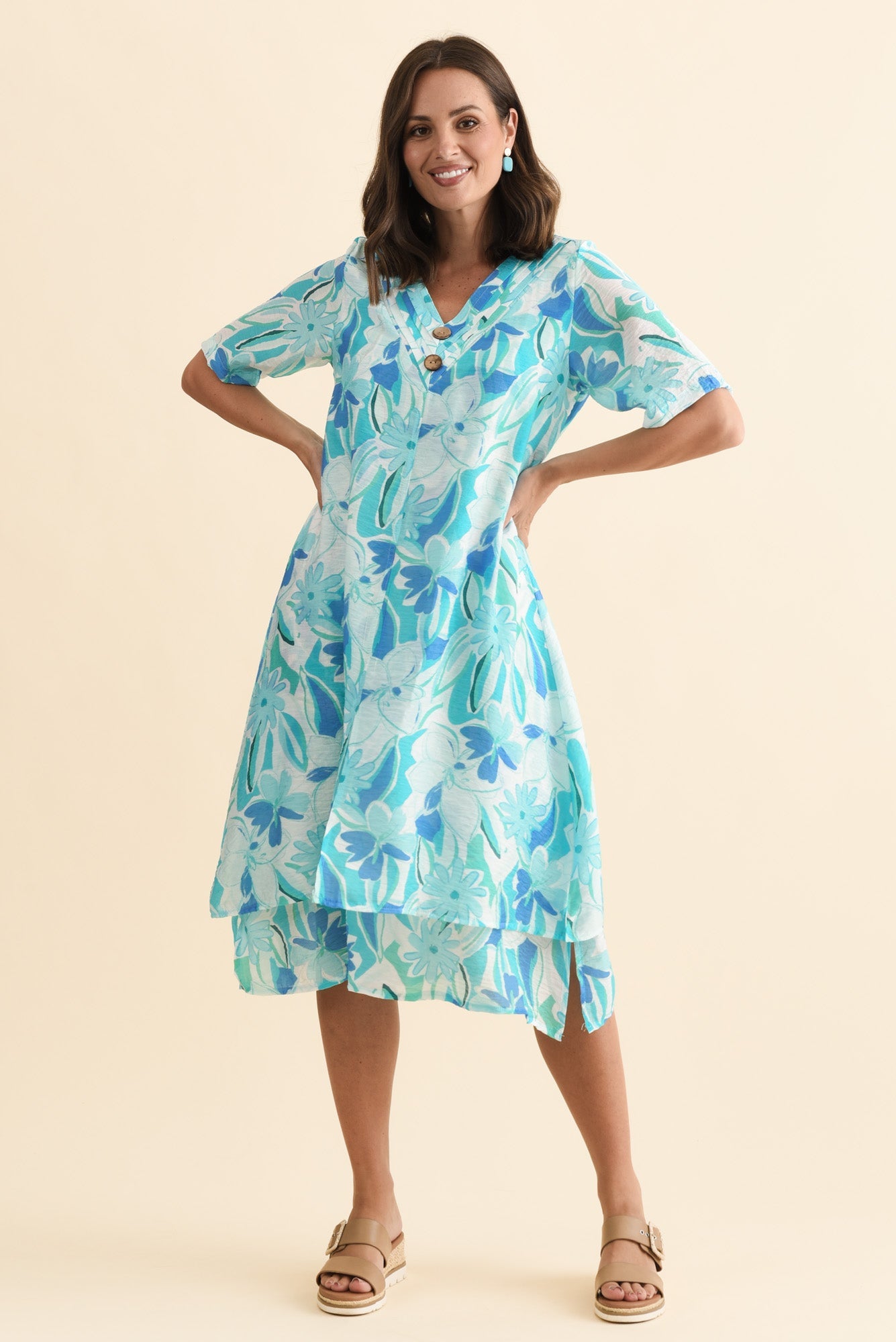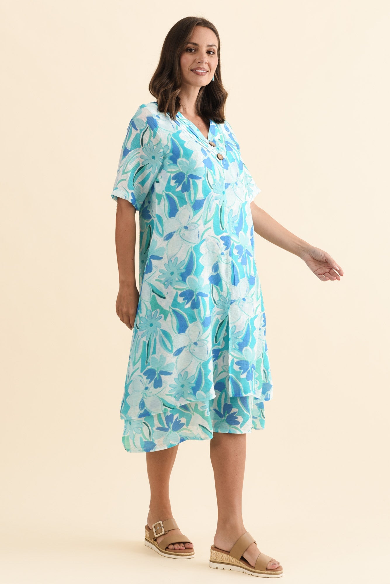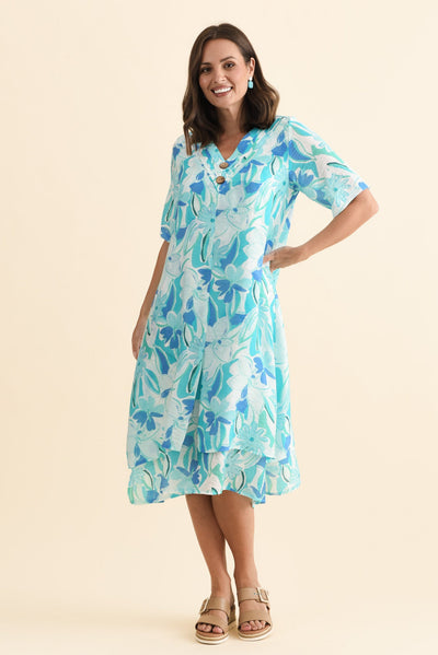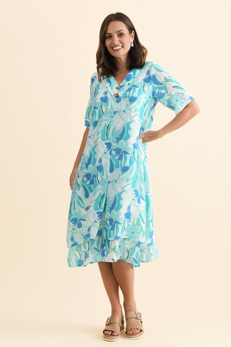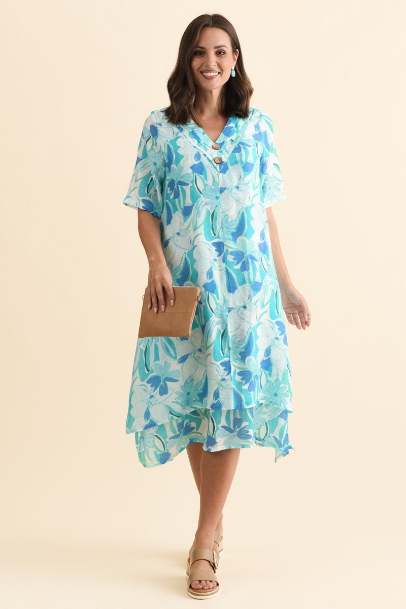 Nala Aqua Blossom Layers Dress