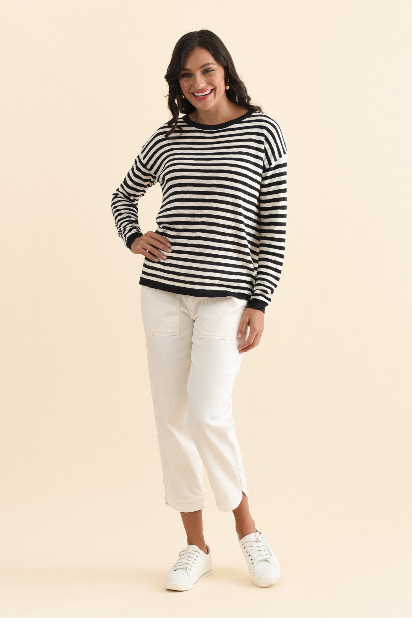 Natasha Black Stripe Knit Top