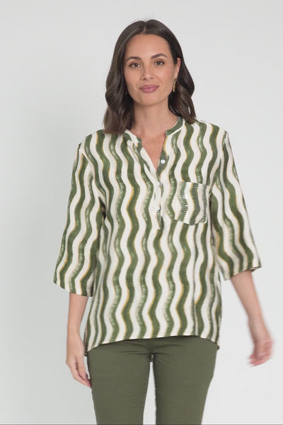 Neiman Khaki Swirl Pocket Blouse