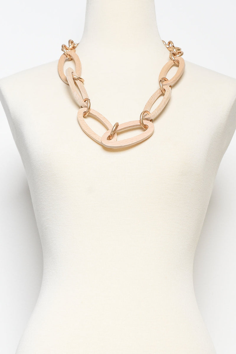 Nevaeh Beige Wooden Link Necklace