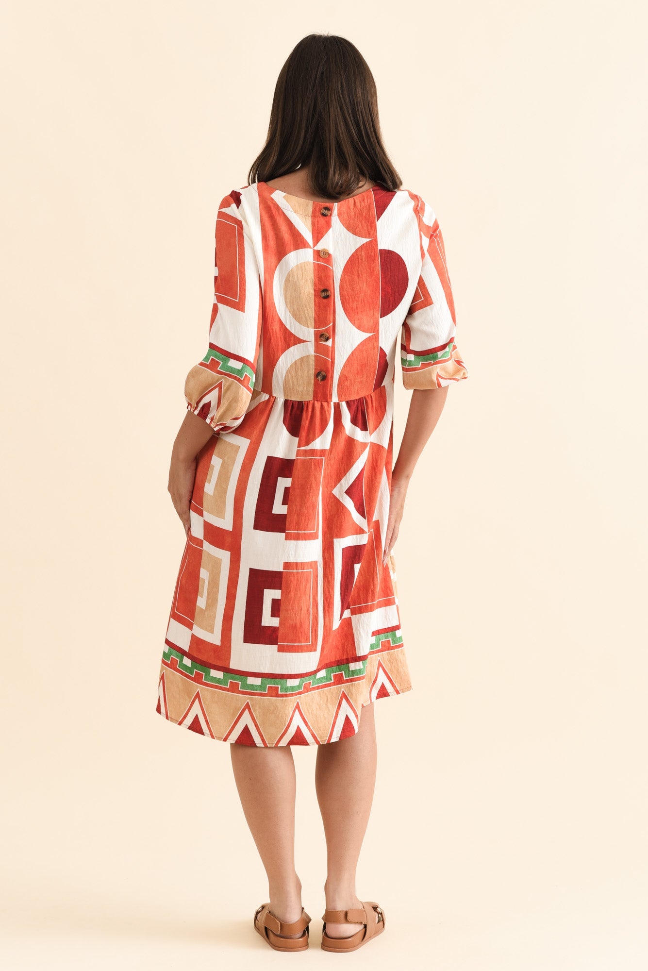 NICOLETTE ORANGE GEO COTTON SLEEVED DRESS