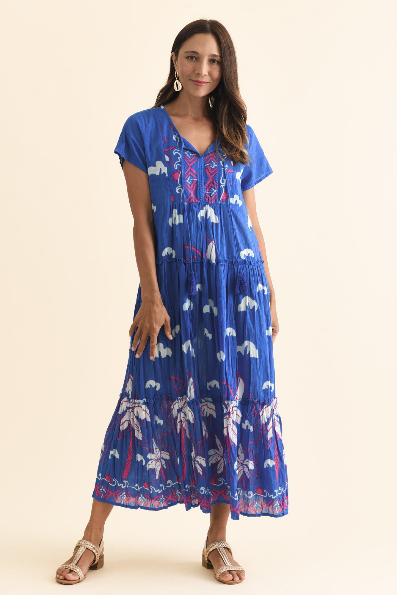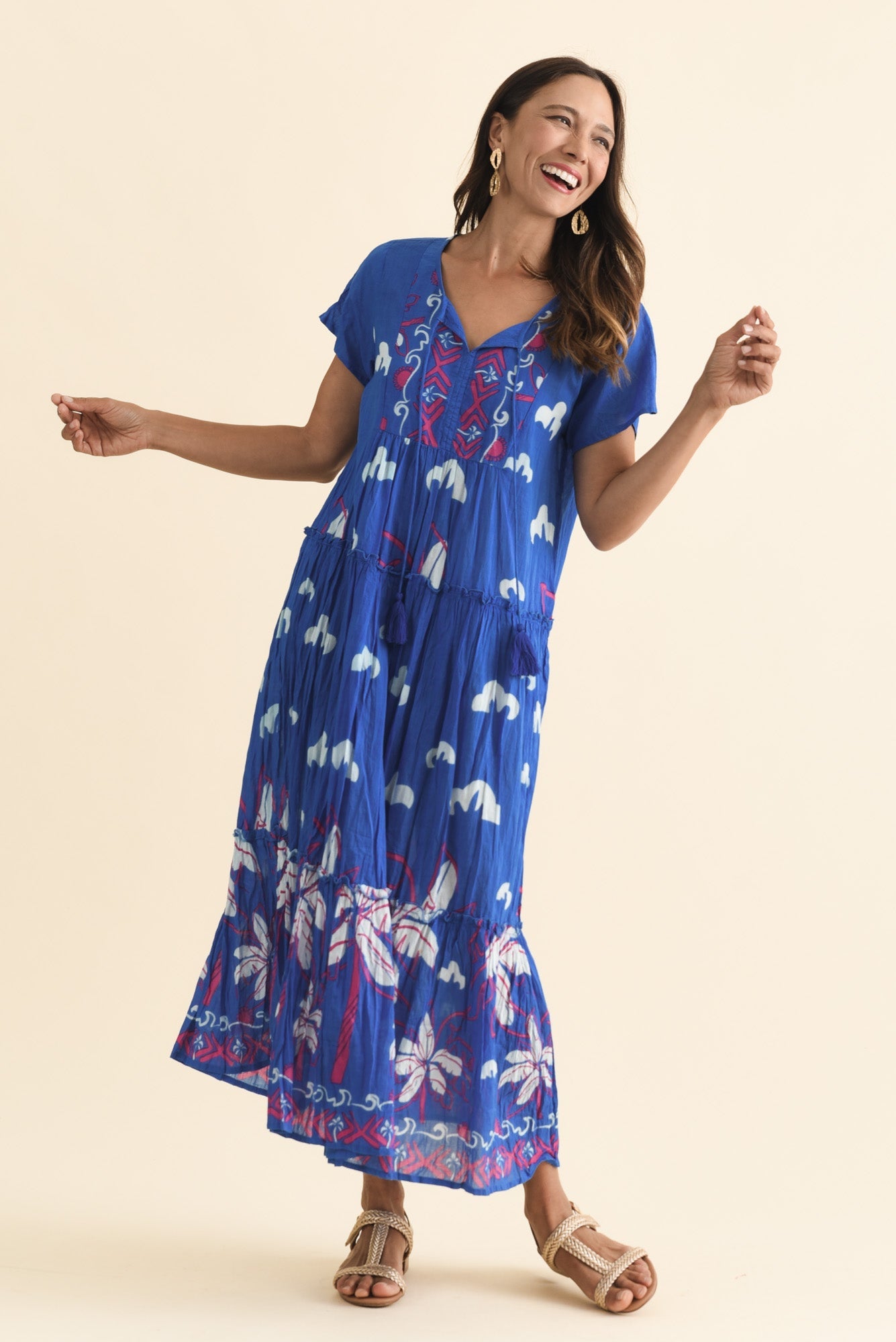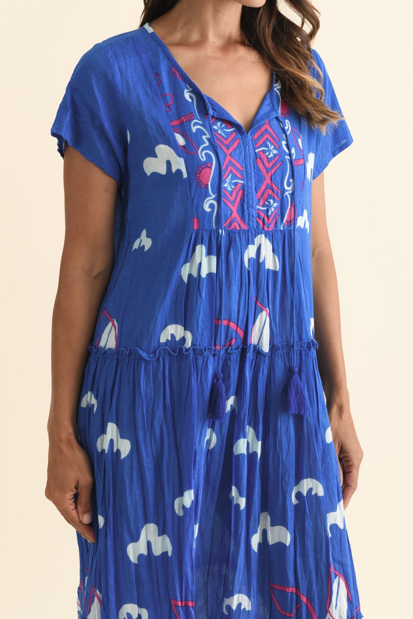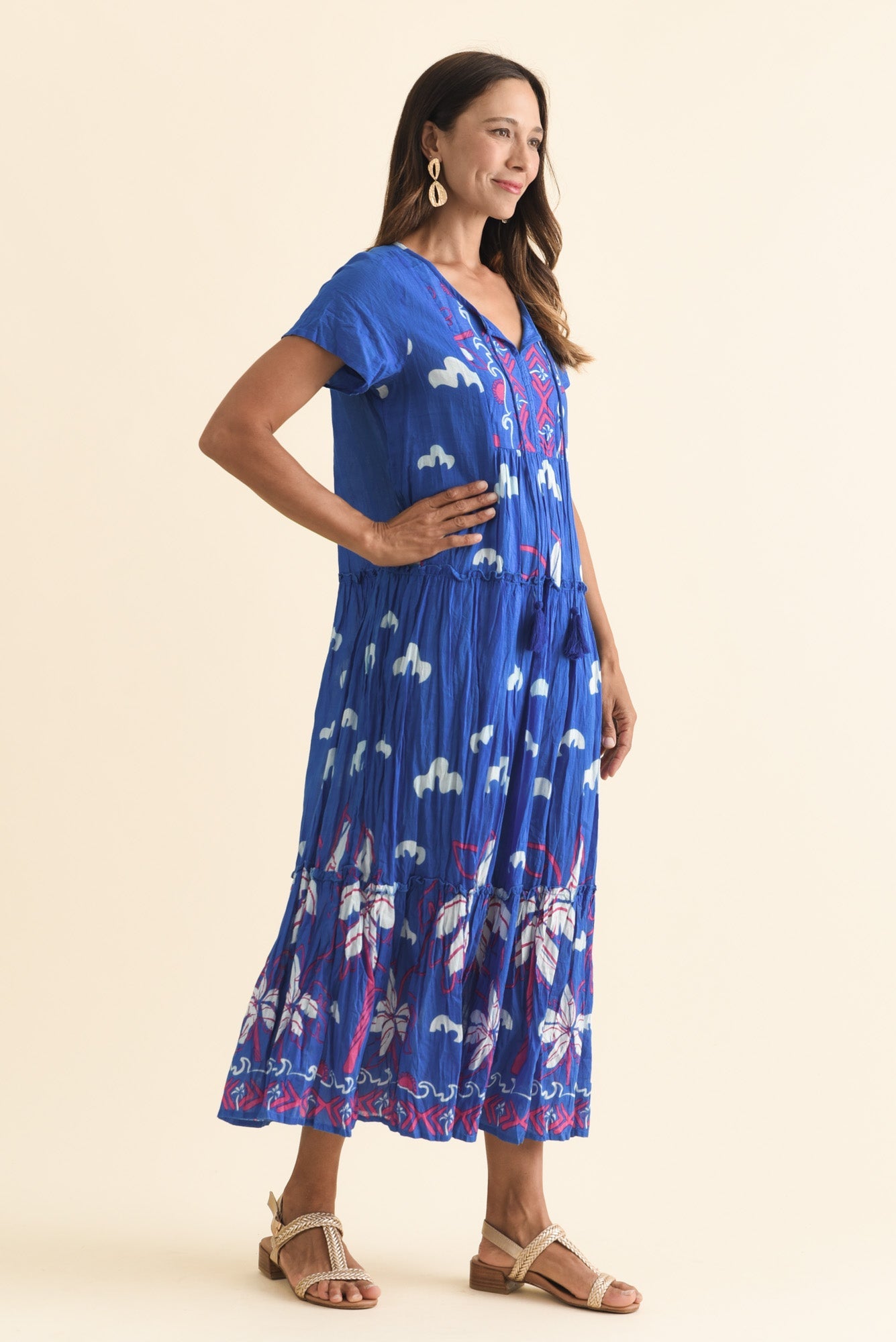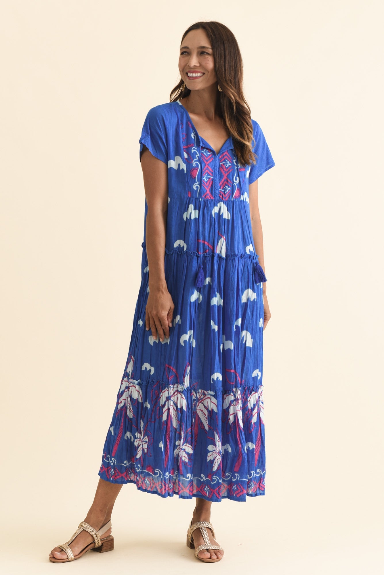 Nona Cobalt Seaside Crinkle Cotton Maxi Dress