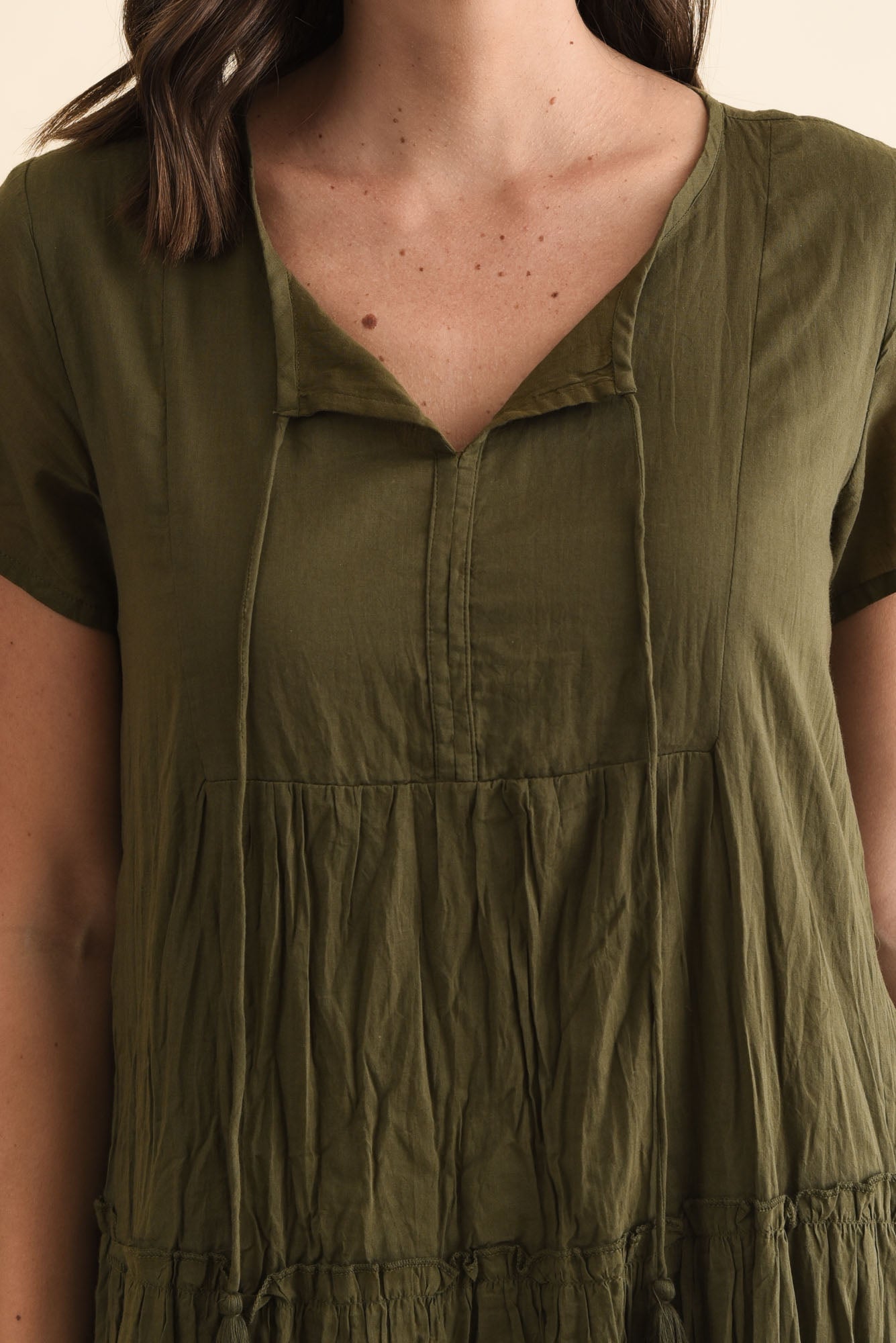 Nona Khaki Crinkle Cotton Maxi Dress