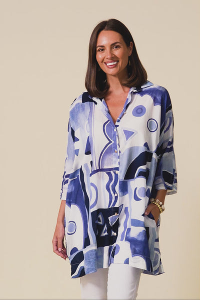 Norla Blue Abstract Cotton Shirt