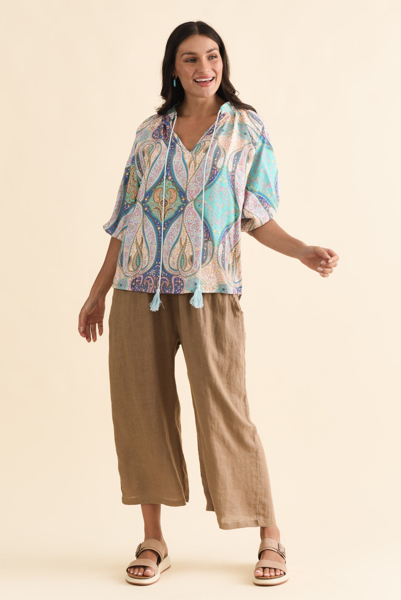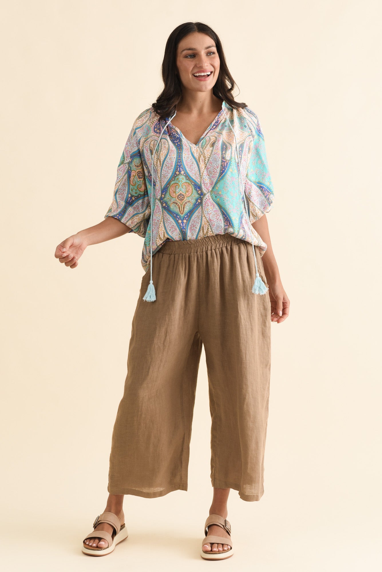 OLGA MOCHA LINEN WIDE LEG PANTS