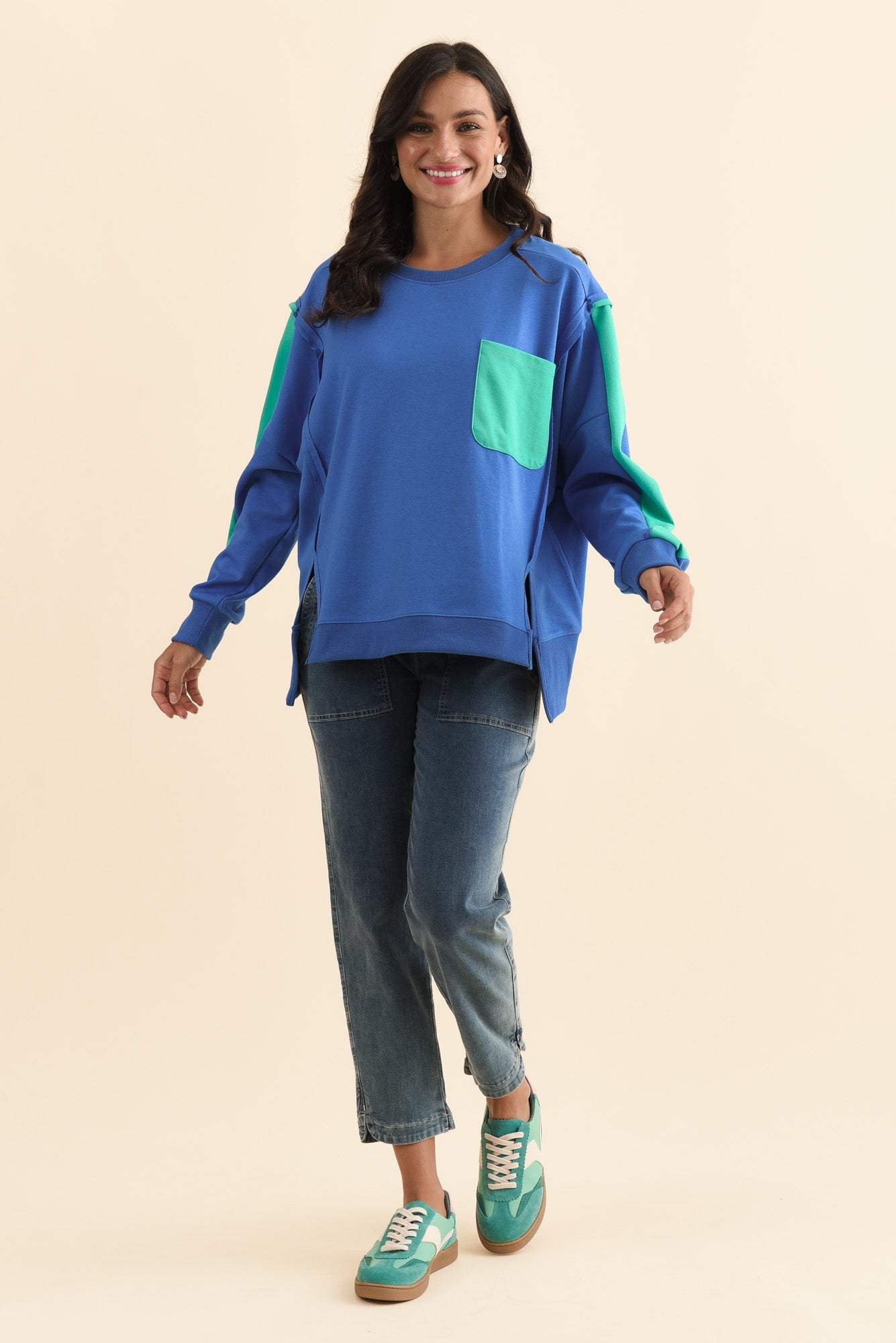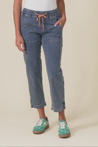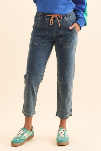 Classic mid-blue washed denim. Wash may vary slightly from product to product