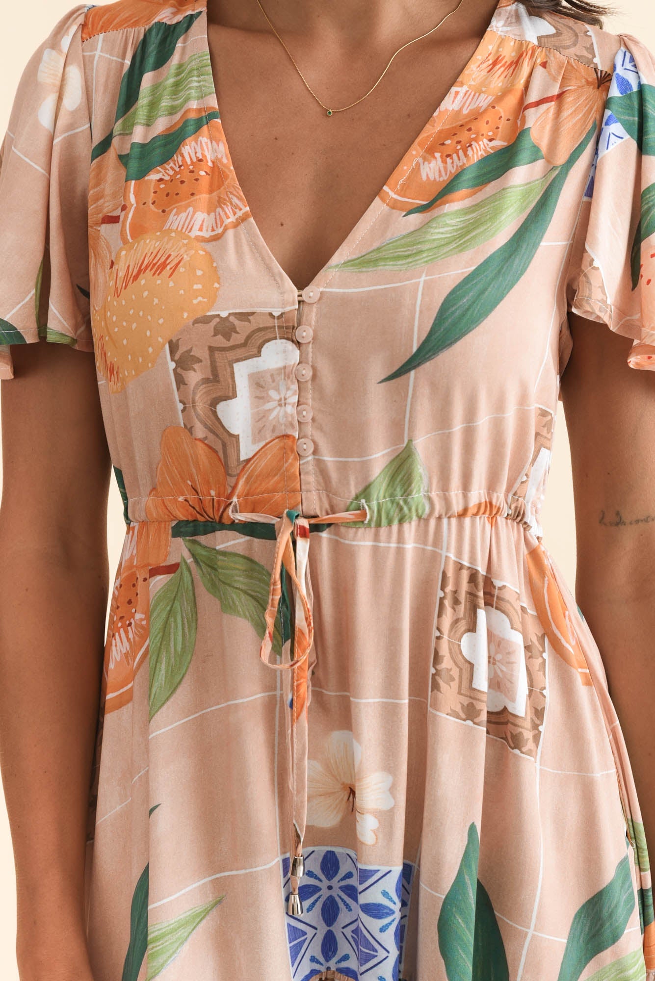 - COLOUR: Dusty orange base adorned with floral, fruit and mosaic imagery