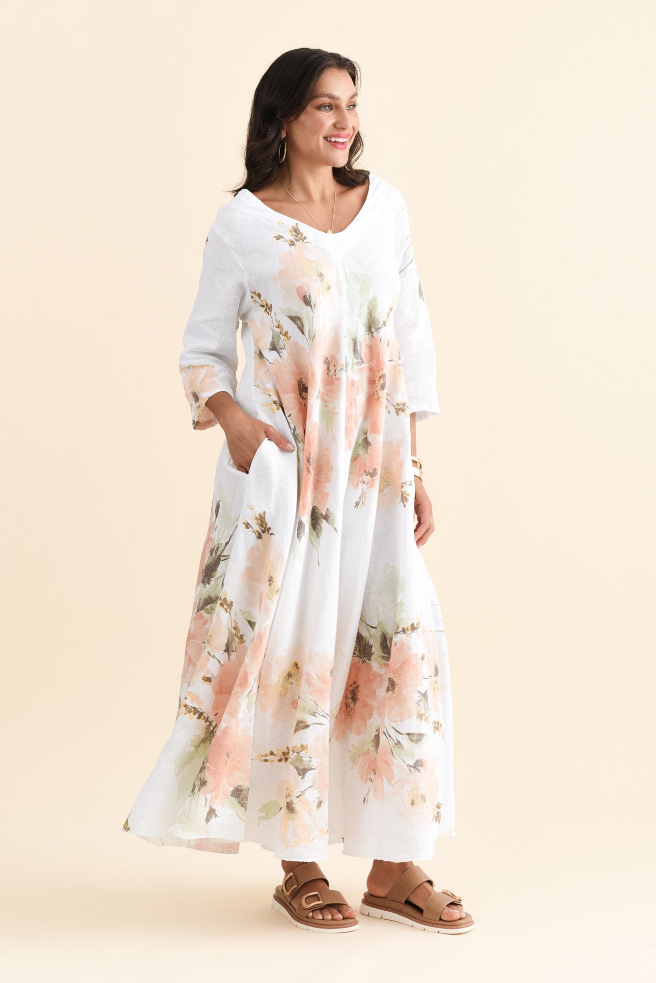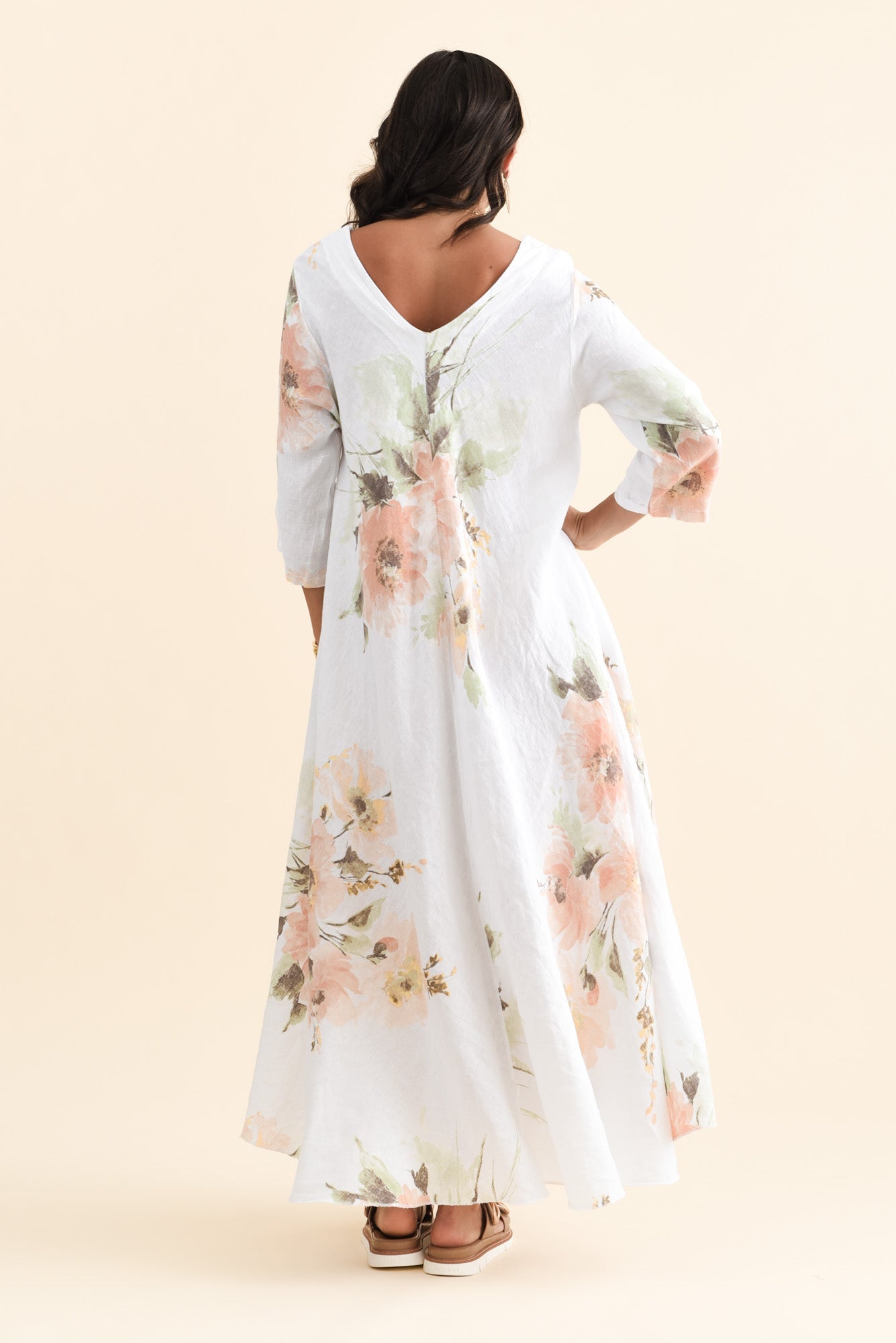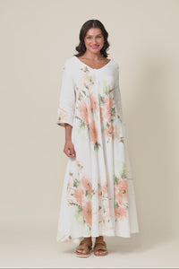 OSCAR WHITE FLORAL LINEN MAXI DRESS