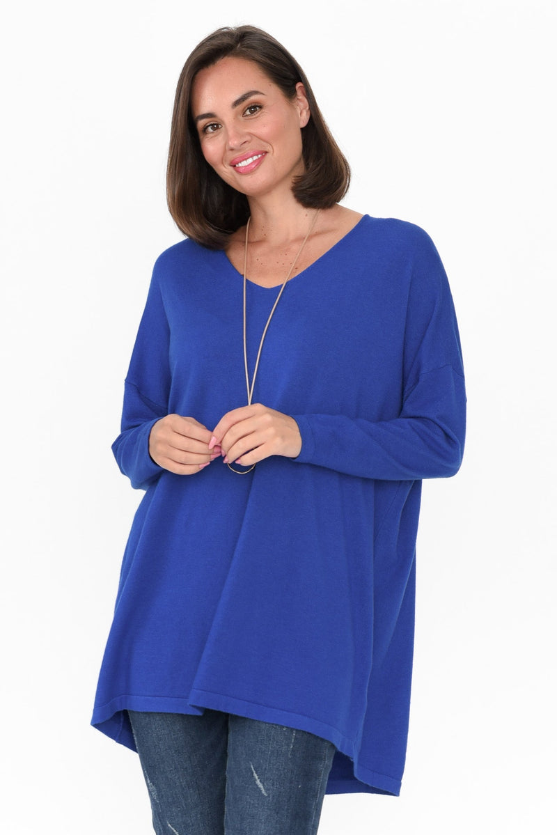 Piper Cobalt V Neck Knit Jumper