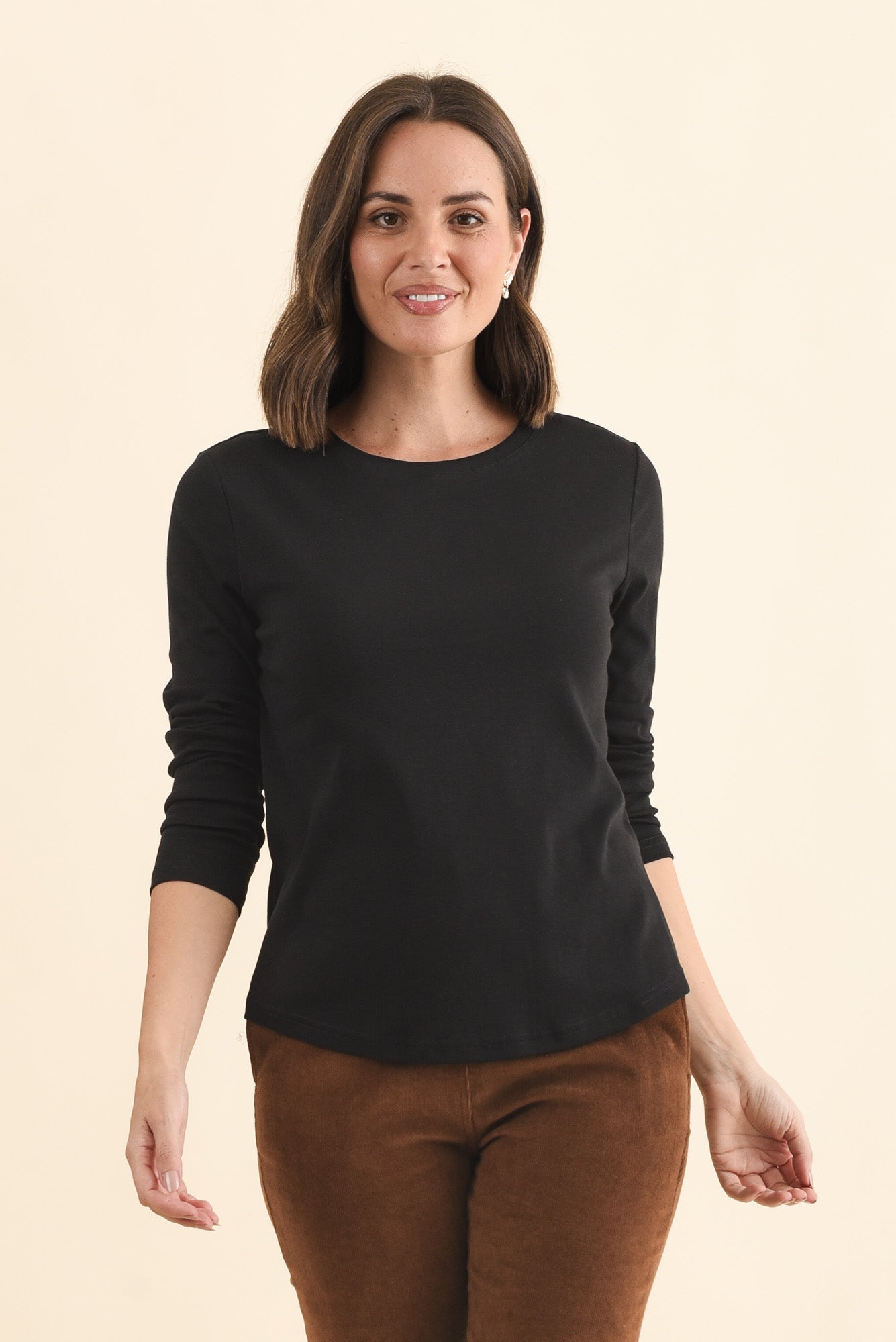 Porter Black Cotton Long Sleeve Top