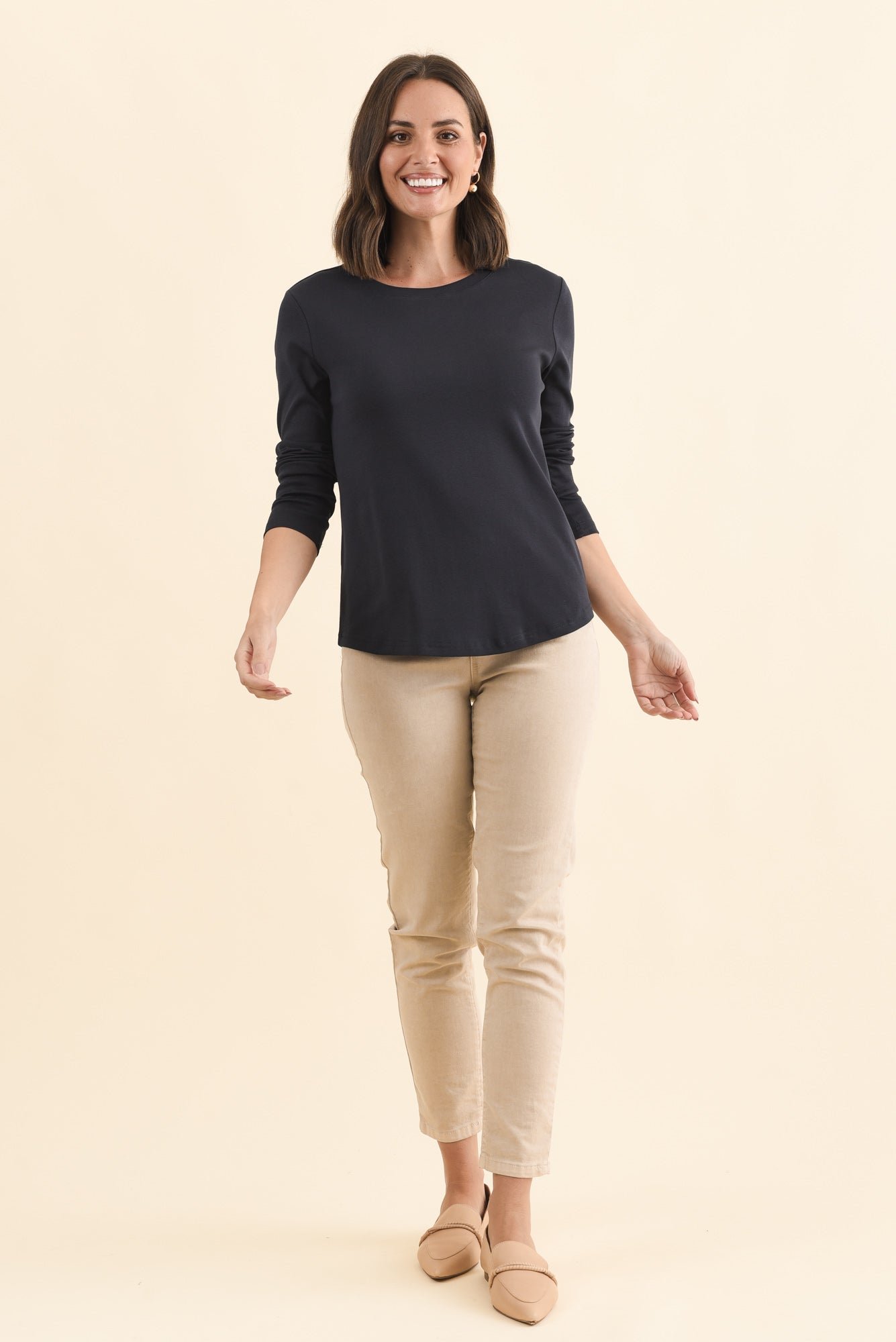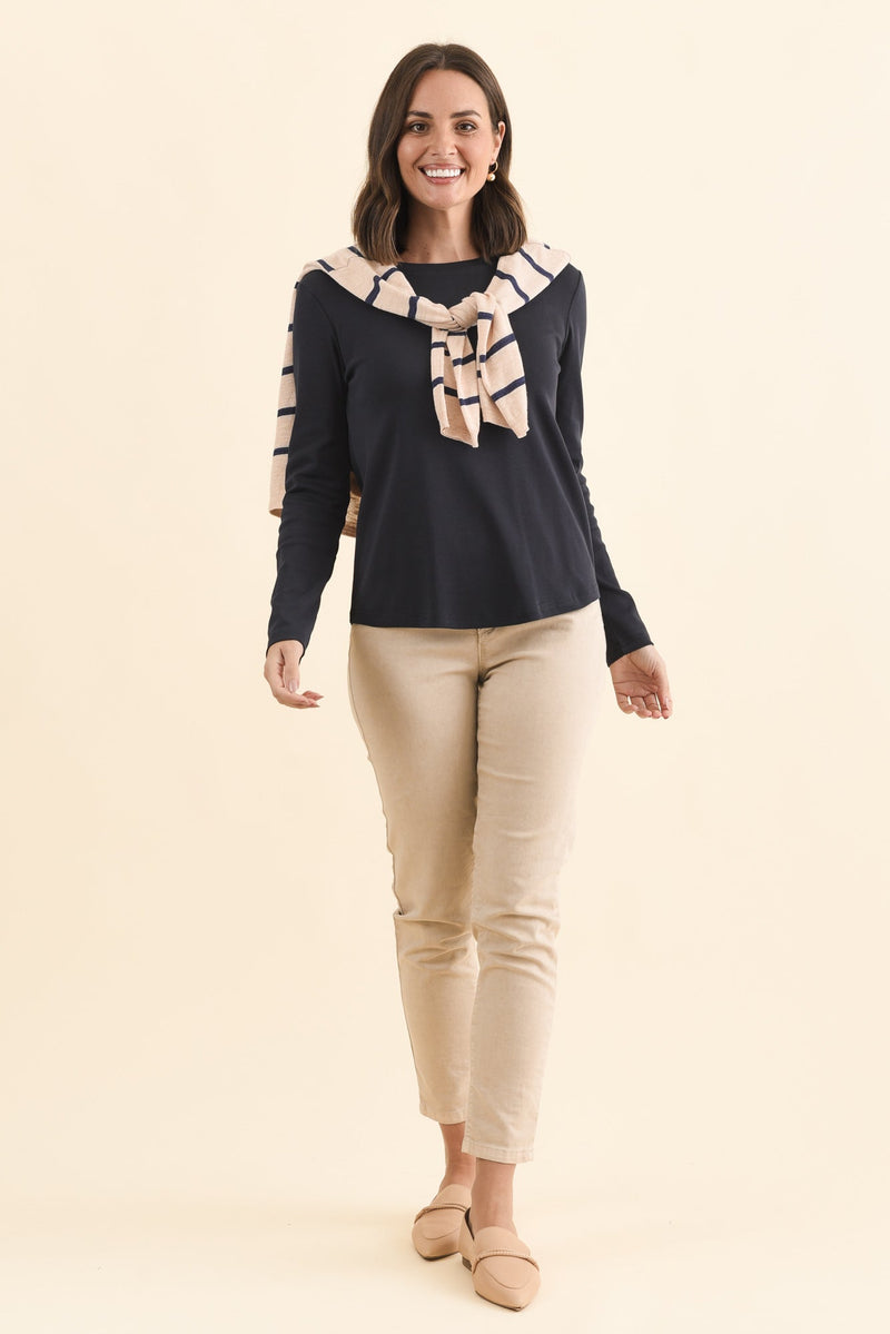 PORTER NAVY COTTON LONG SLEEVE TOP