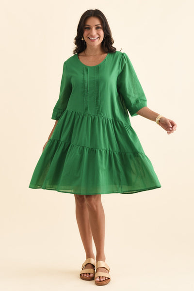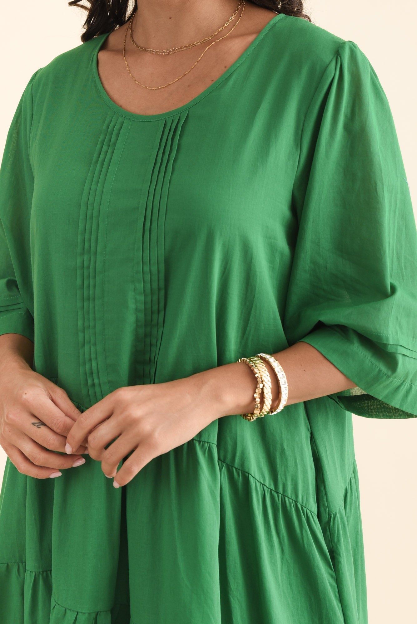 PORTIA GREEN COTTON ASYMMETRICAL DRESS