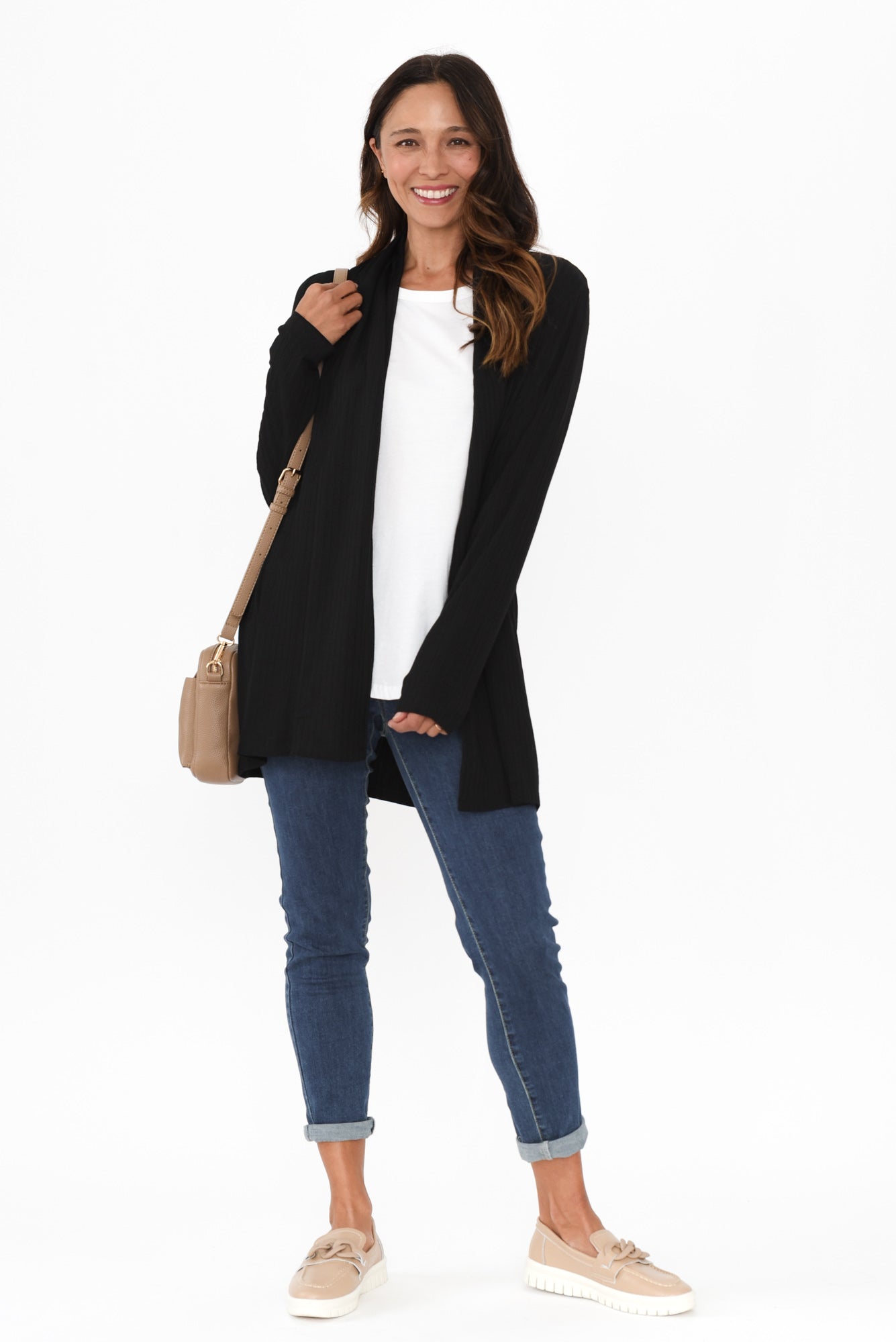 Portland Black Ribbed Cardigan