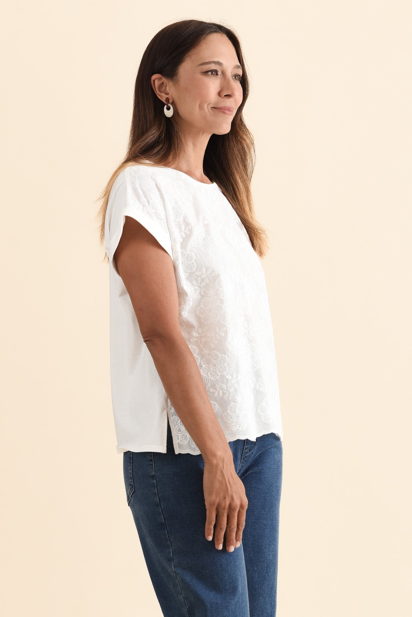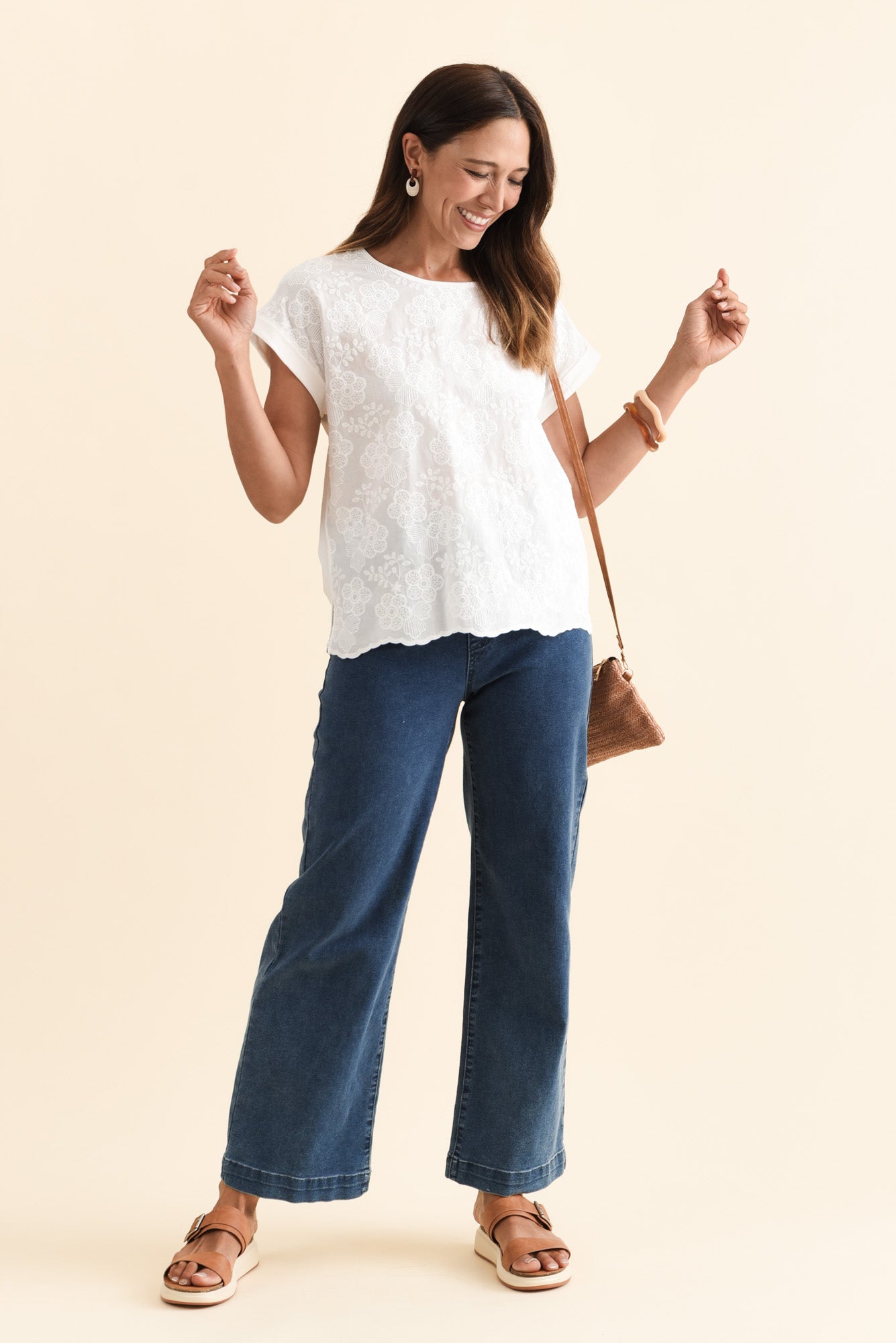 RAEWYN WHITE FLOWER EMBROIDERED COTTON TOP
