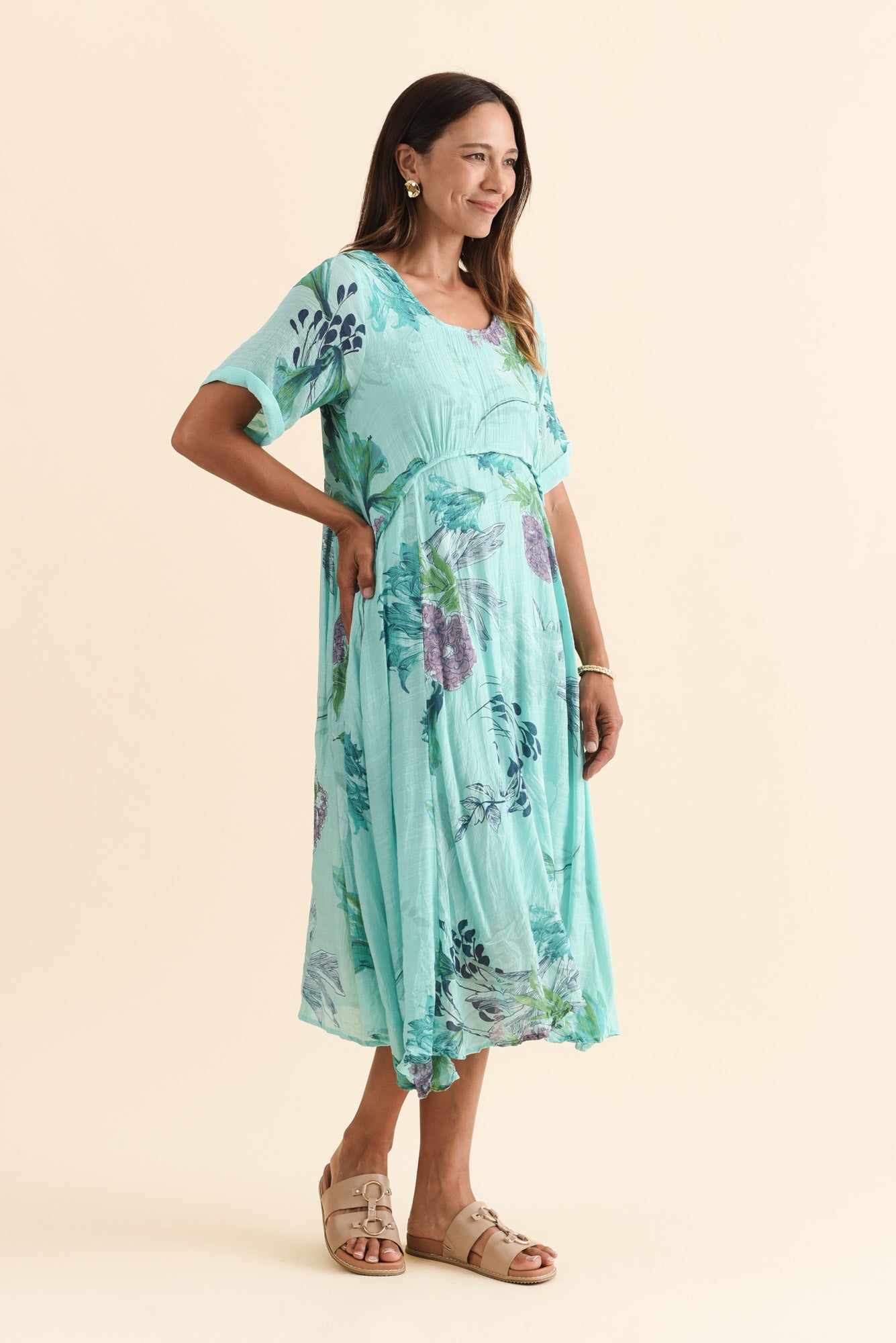 A-line silhouette and crescent waist flatter the figure while keeping things easy and comfortable