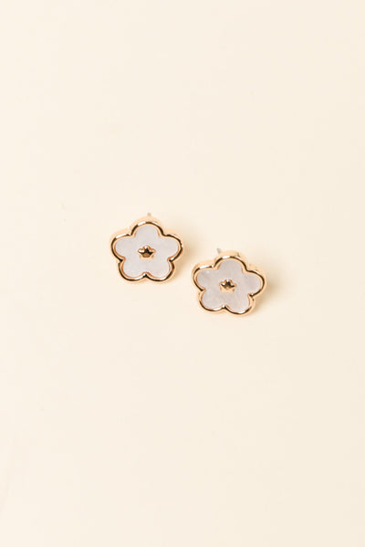 Randa White Flower Stud Earrings