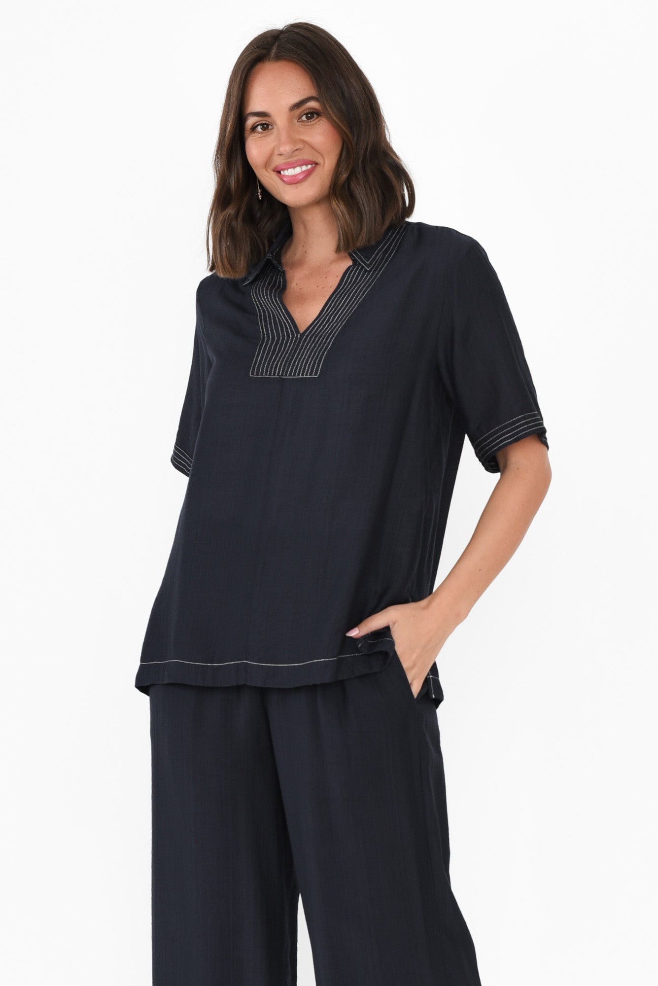 RHIANNA NAVY CONTRAST COLLARED TOP