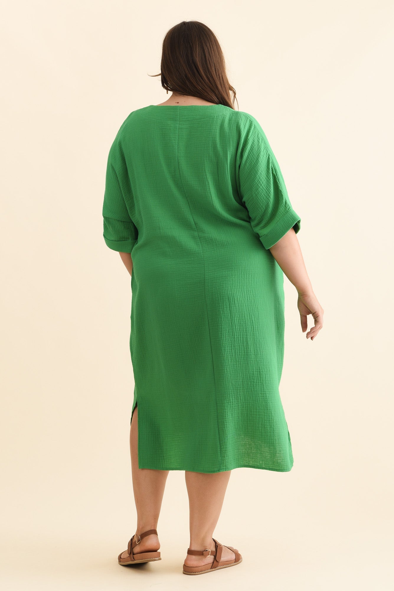 ROMA GREEN COTTON CHEESECLOTH DRESS