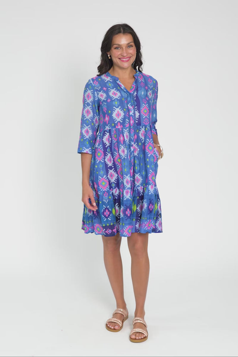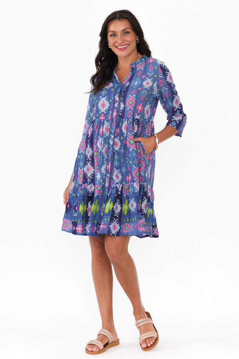 Romy Blue Geo Crinkle Cotton Dress