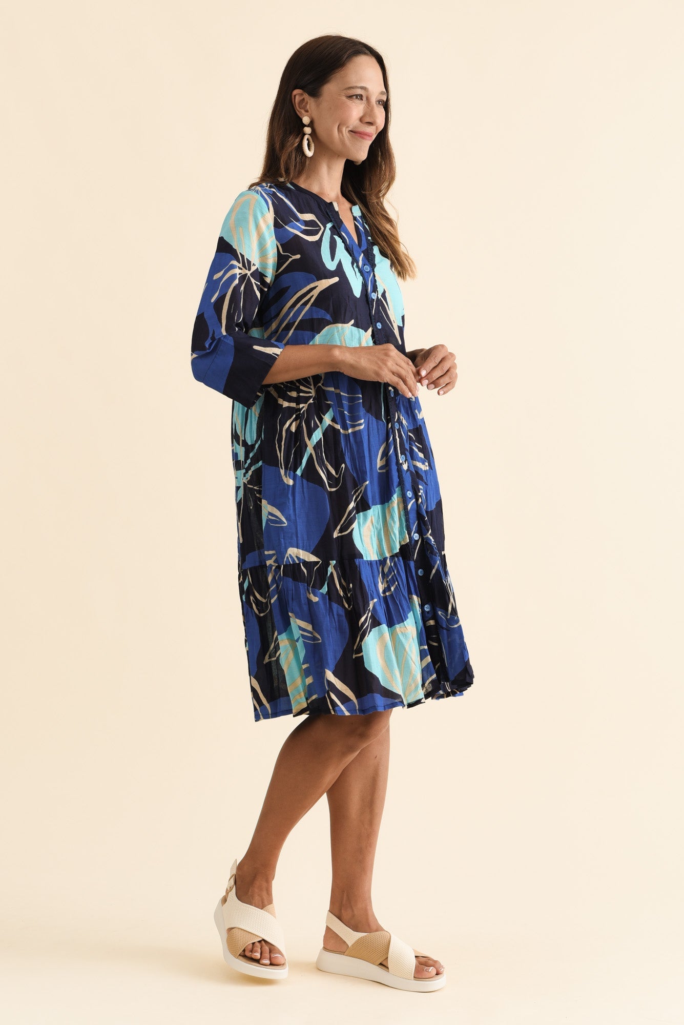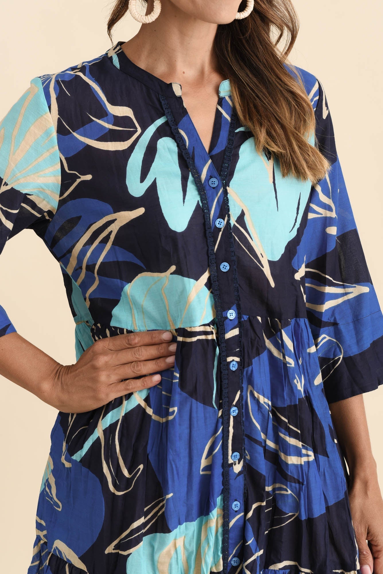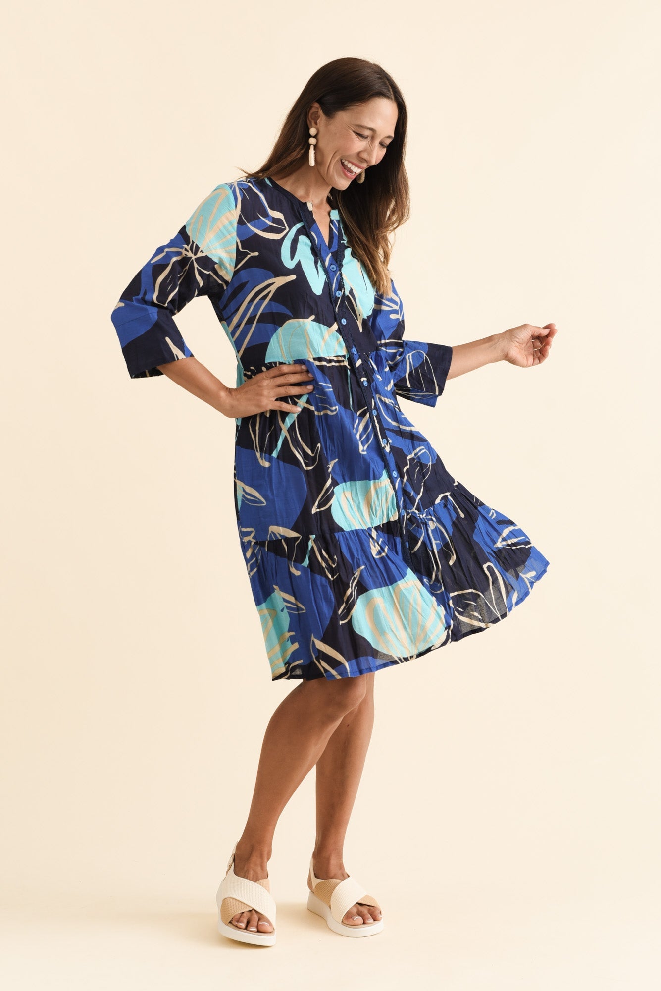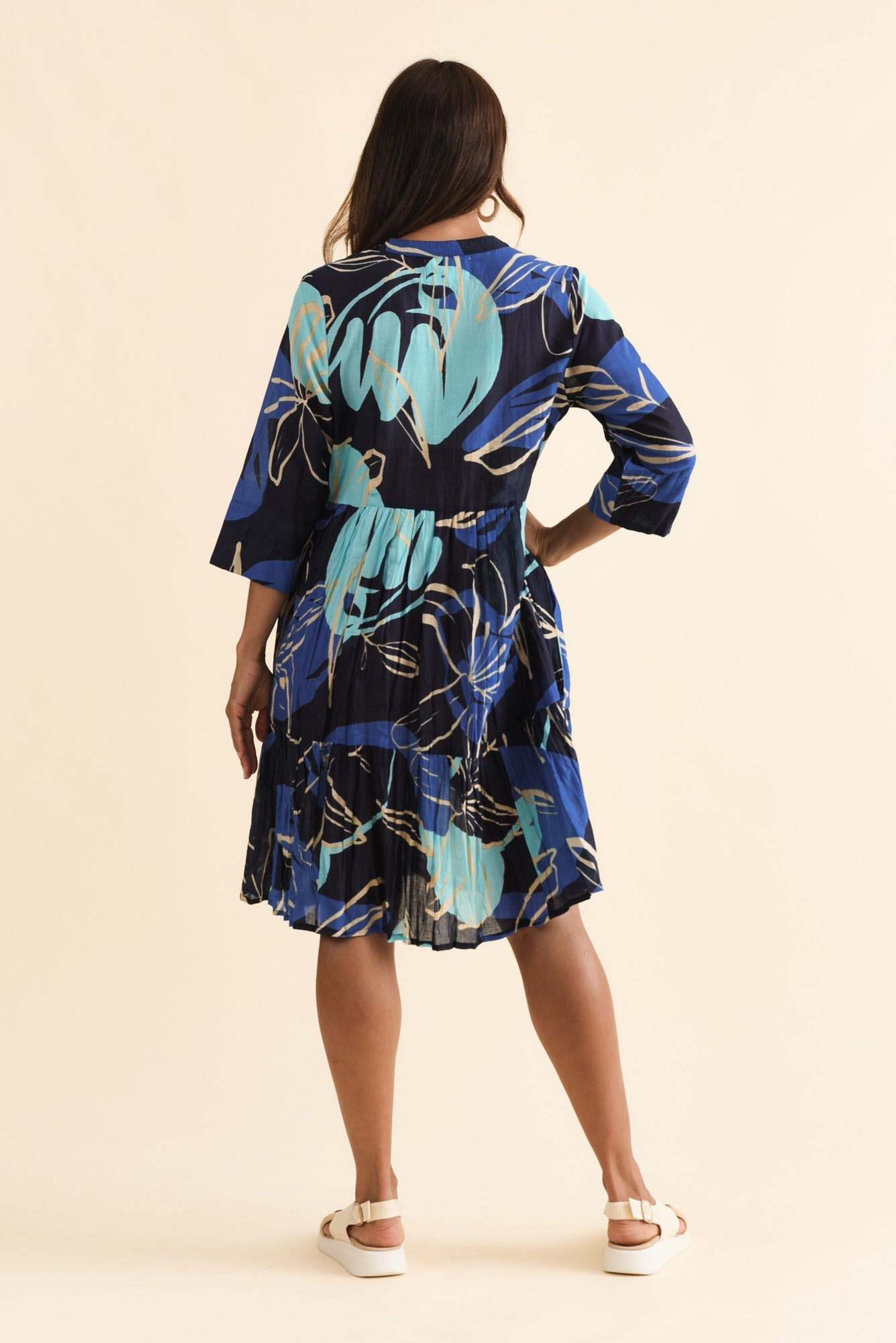 Romy Blue Tiger Lily Crinkle Cotton Dress