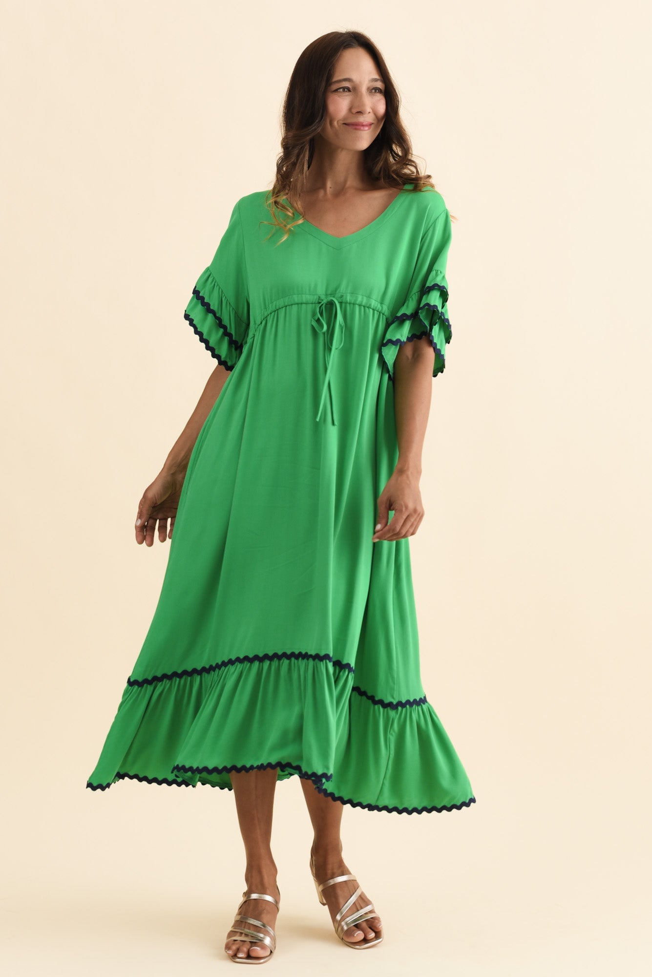 Rosemarie Green Contrast Frill Dress