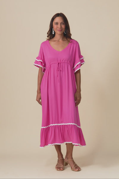 Rosemarie Pink Contrast Frill Dress