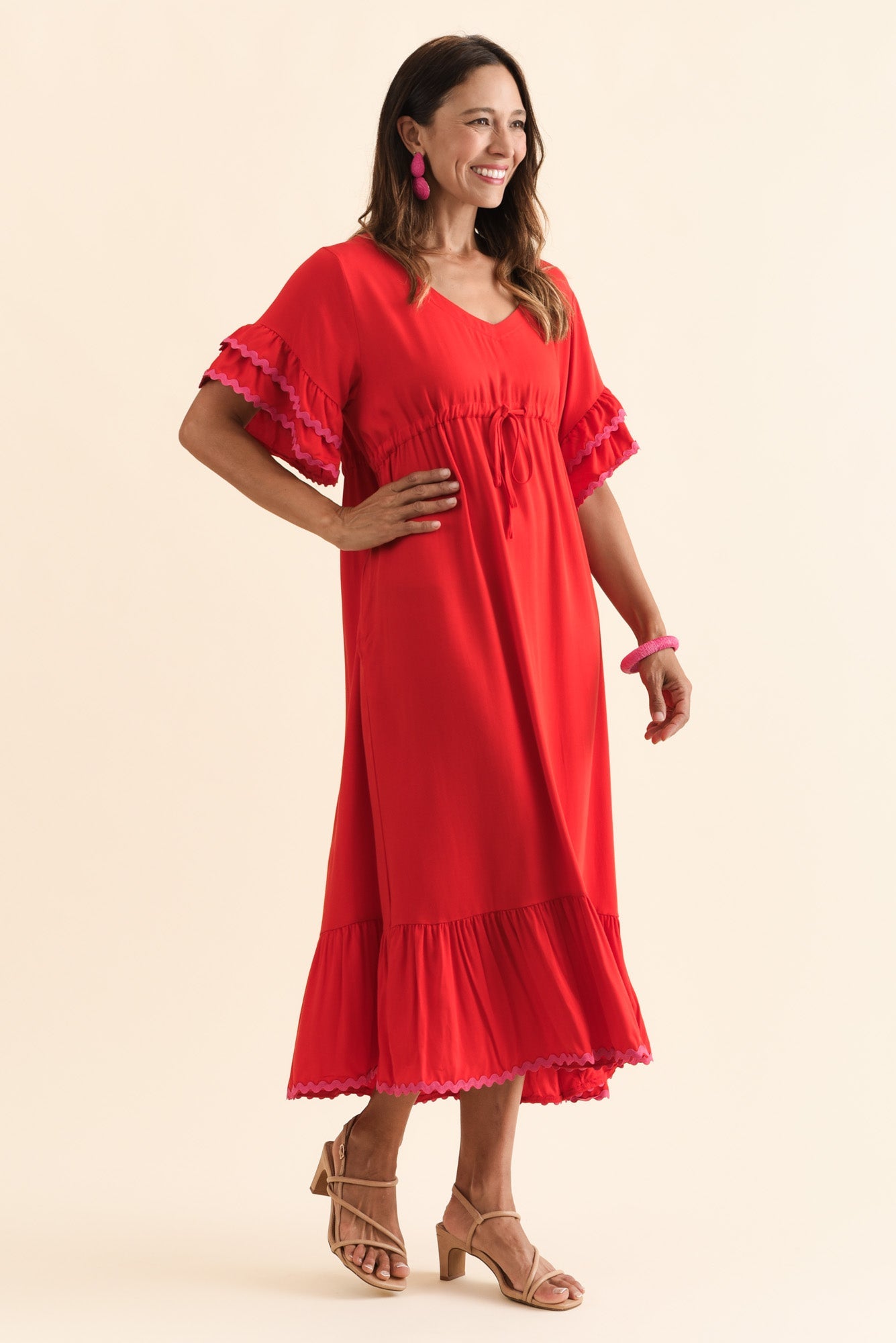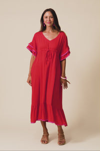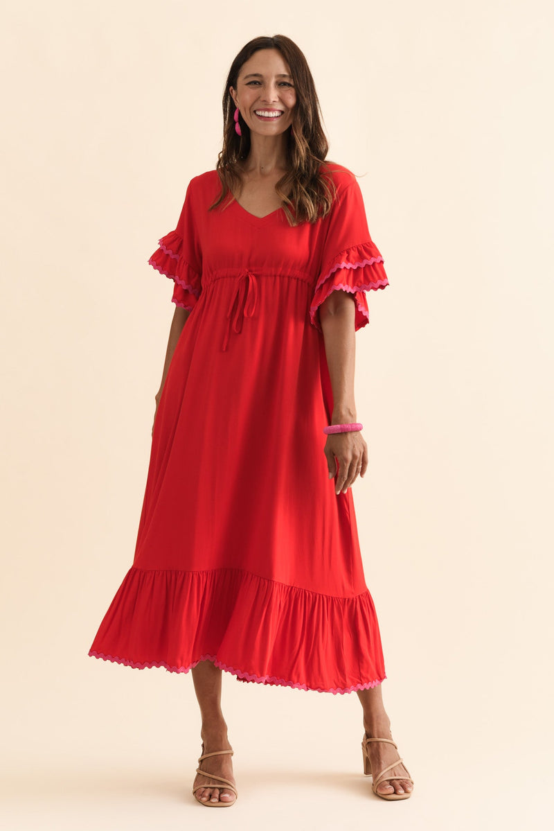 ROSEMARIE RED CONTRAST FRILL DRESS