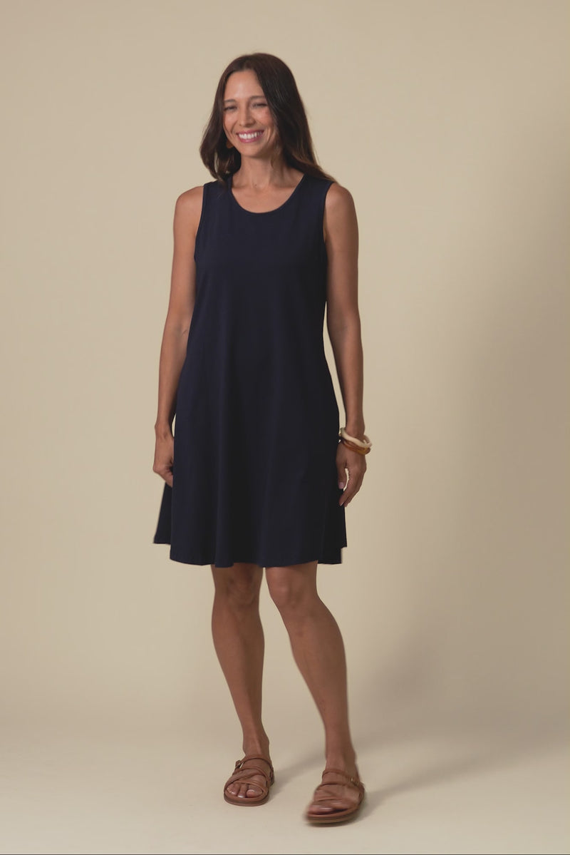 A sophisticated summer basic tank dress with a sleeveless cut to help keep you cool during the warmer weather!