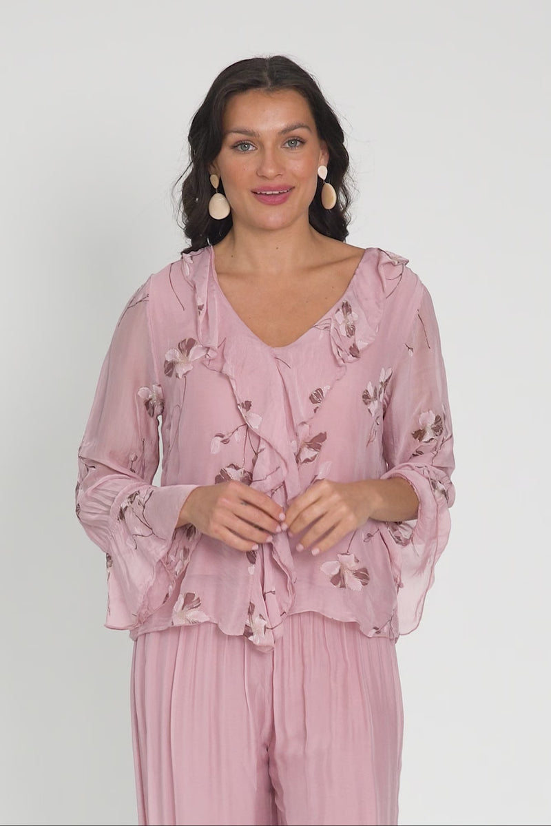 RUTH PINK FLORAL SILK FRILL TOP