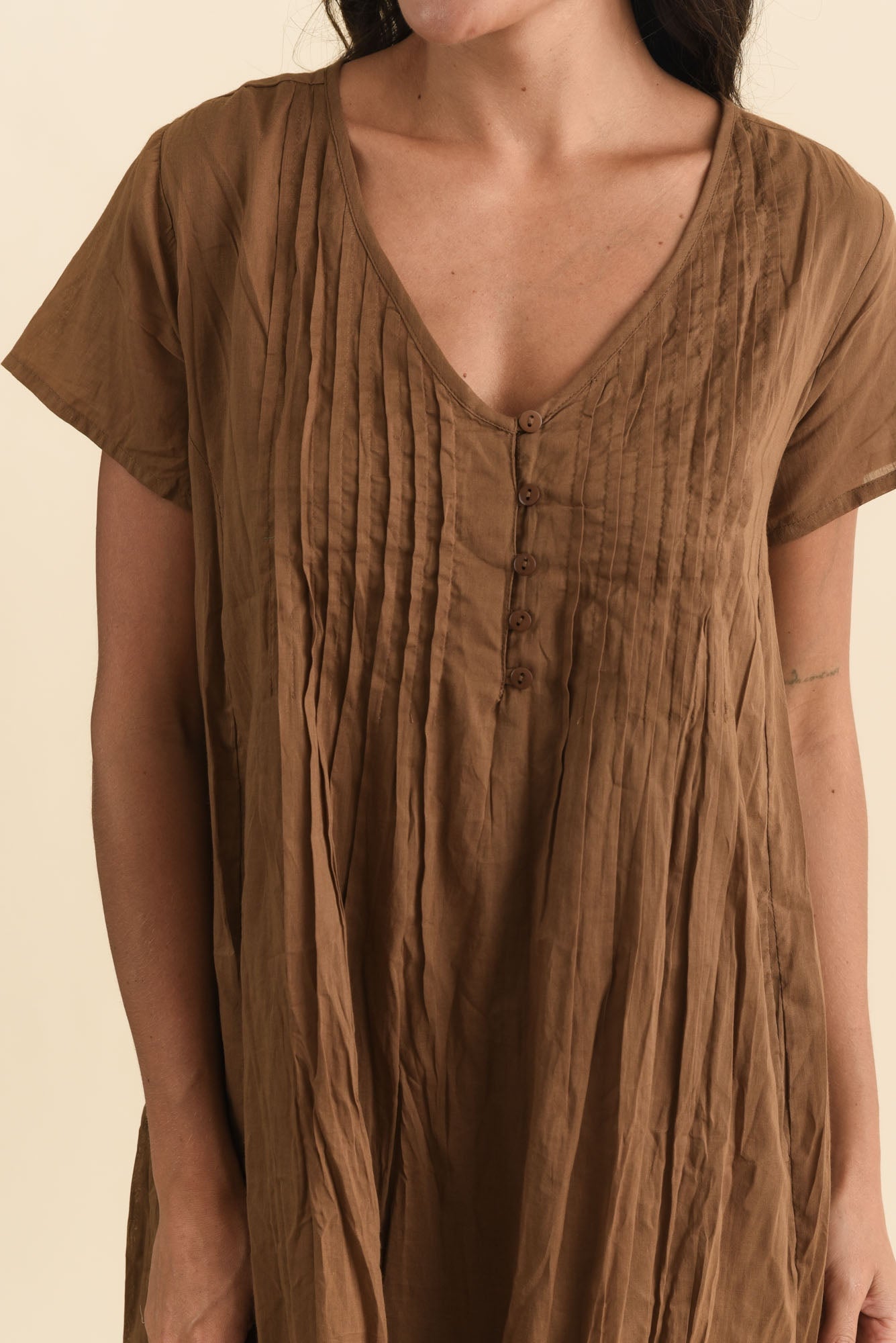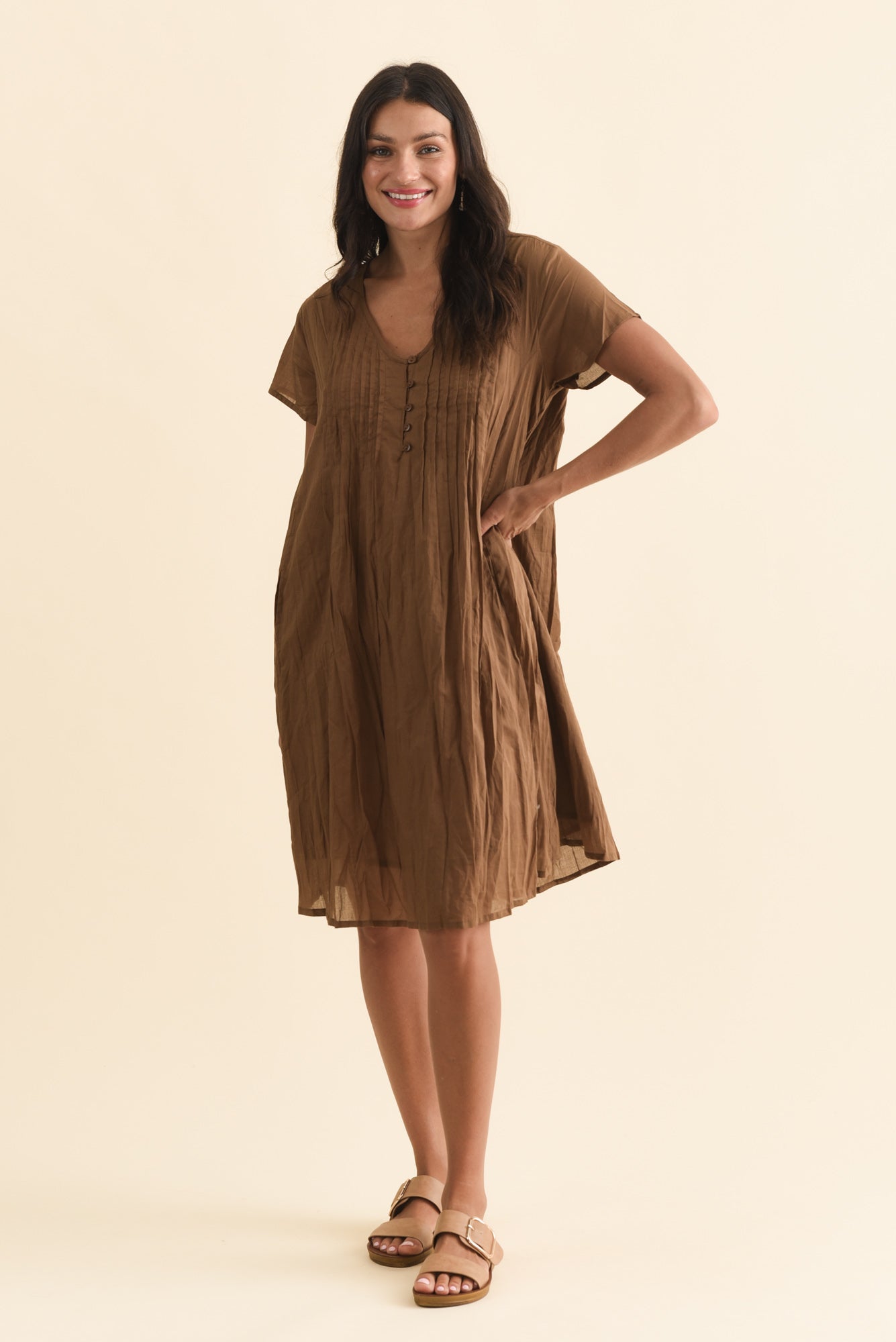 SABINA MOCHA CRINKLE COTTON DRESS