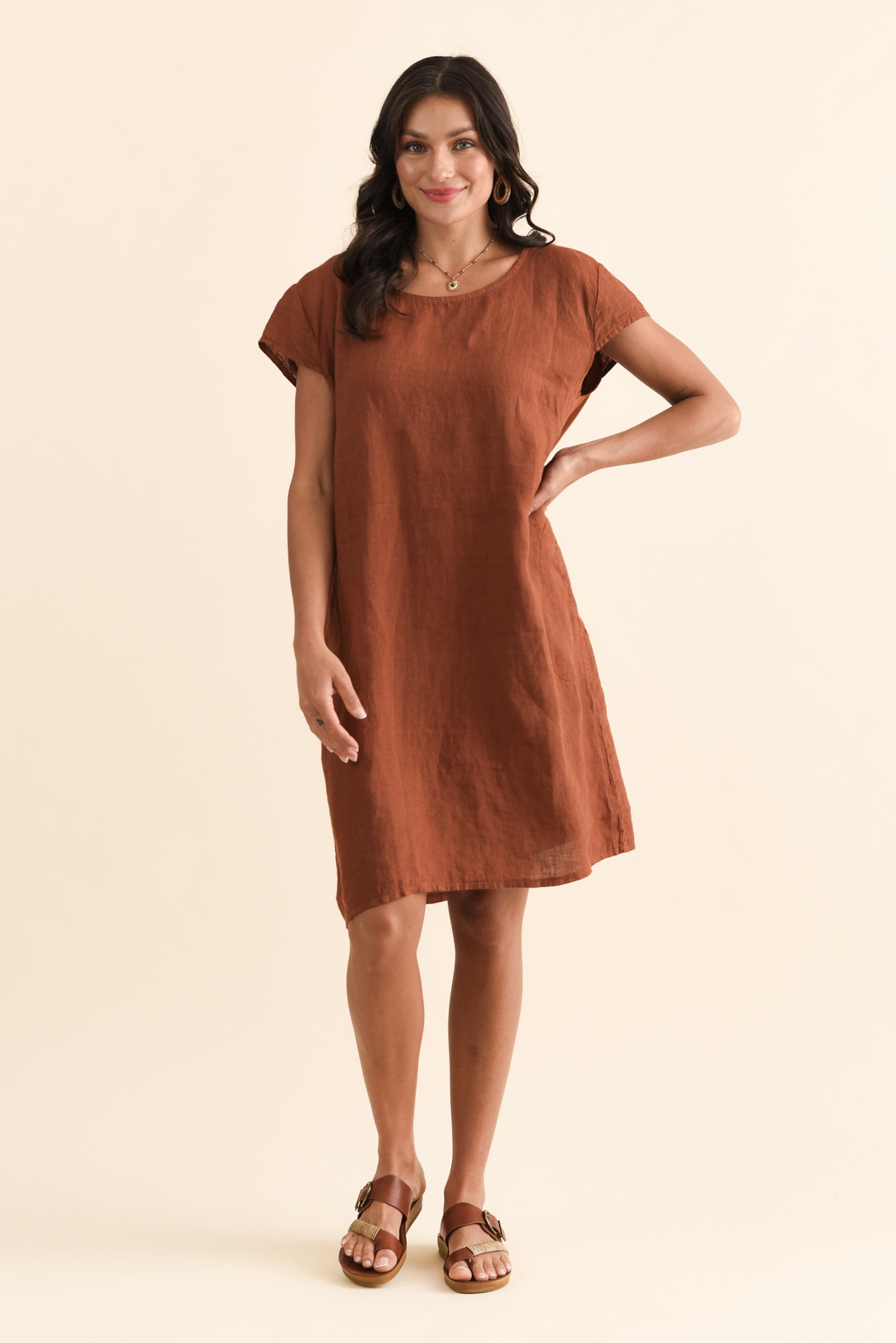 SAHARA RUST LINEN POCKET DRESS
