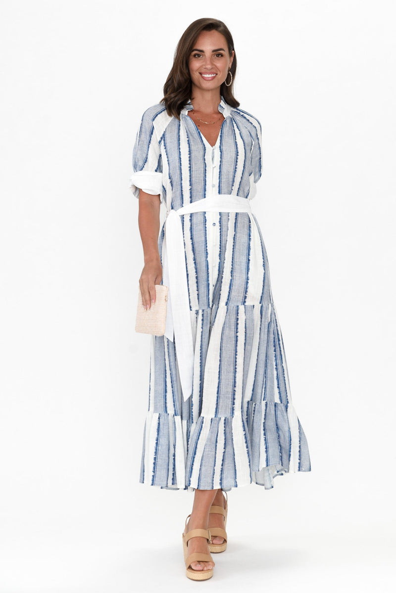 SCALA BLUE STRIPE LINEN BLEND DRESS