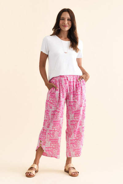 SCOTTY PINK MOSAIC LINEN COTTON PANTS