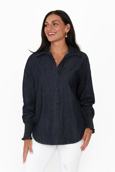 SONDERBORG INDIGO DENIM COLLARED SHIRT