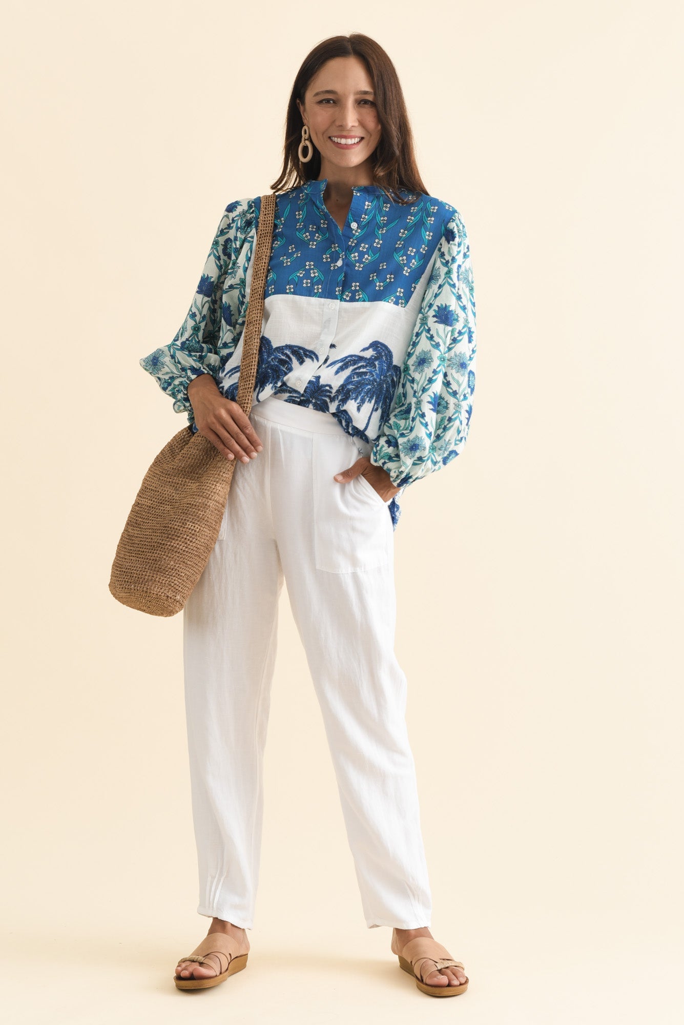 STALONE BLUE TROPICAL COTTON BLOUSE
